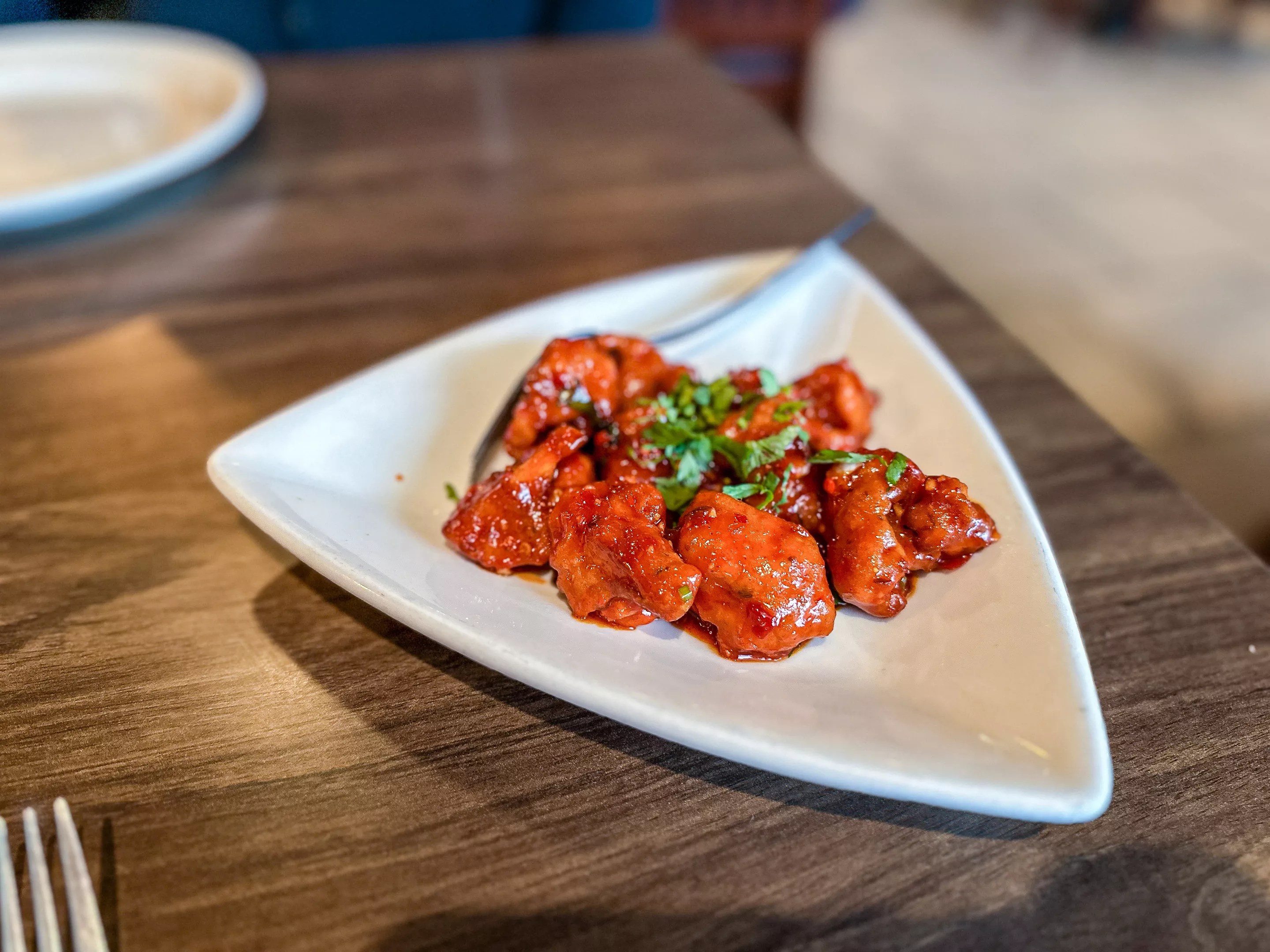 For our mains we went with gobi Manchurian and an order of choila, a Himalayan tiffin. The cauliflower dish was attractively presented in a not-too-spicy chili sauce garnished with red bell pepper, green onions and parsley. This was really a side dish, and the serving size reflected this, but it was just enough.