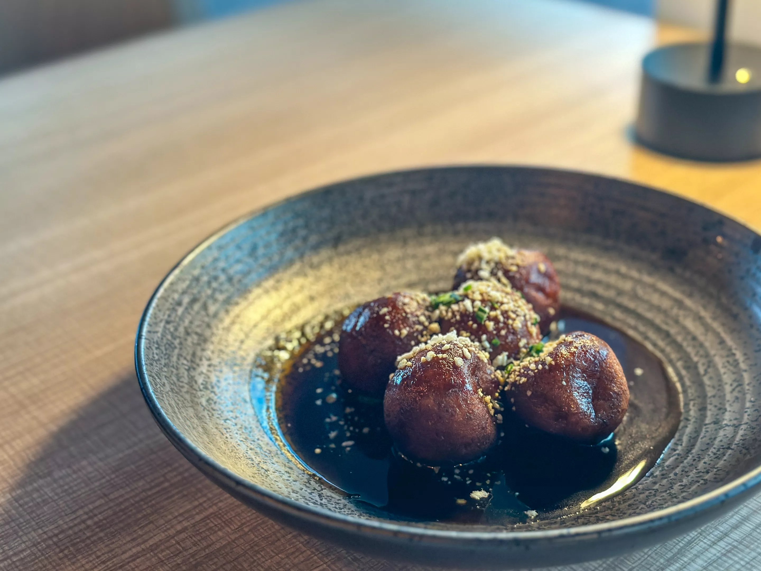 We selected the mandoca pops from the small and sharable portion of the menu. They’re crispy plantain mandocas filled with Oaxaca cheese and dressed with aromatic panela syrup. These Venezuelan treats are usually made of deep-fried cornmeal, but plantains are used as the base in this case. These were sweet but not too sweet and still worked as a great beginning.