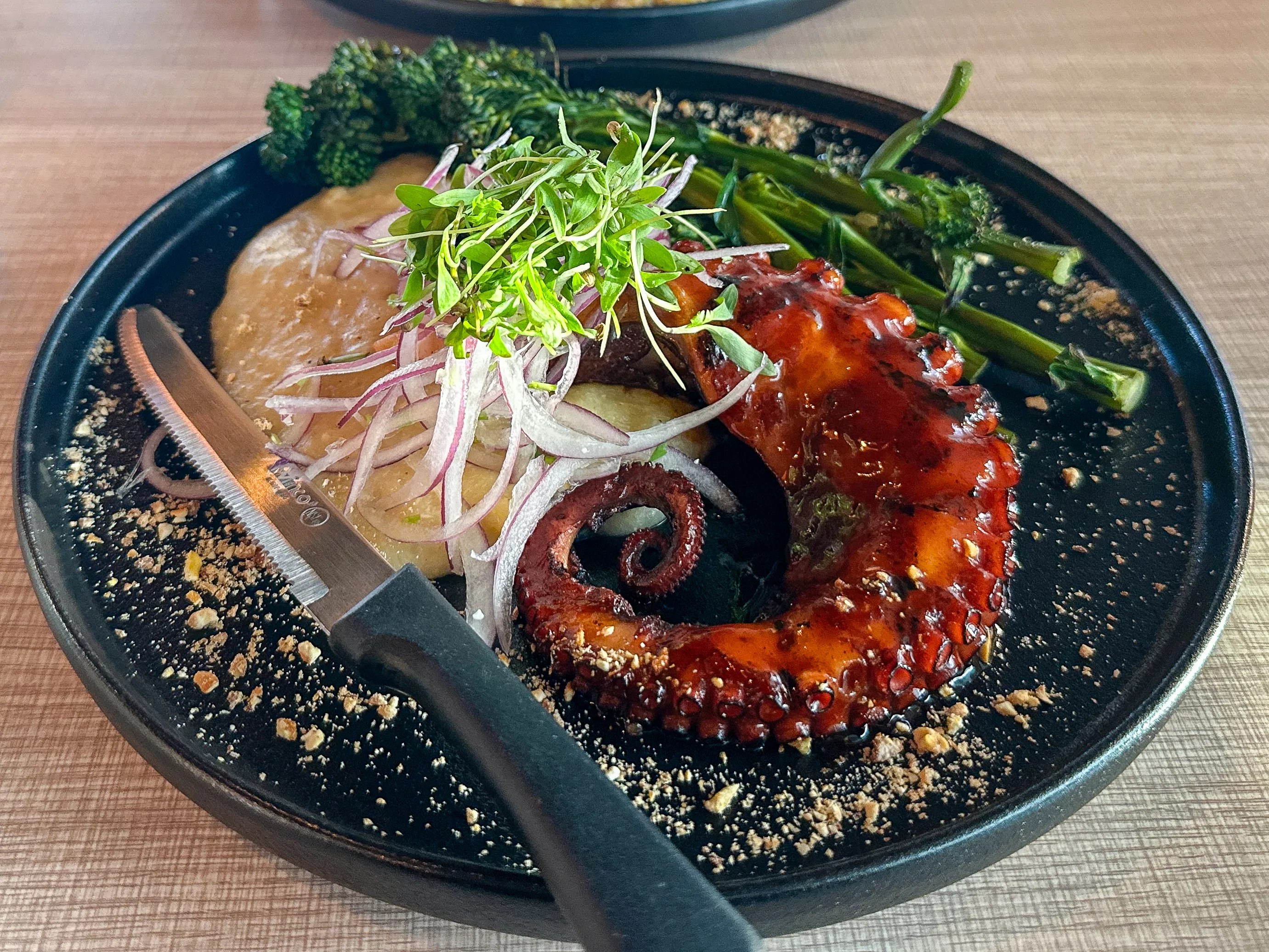 The mains are divided into selections from the garden, the sea or the turf. We ordered two from the sea: pulpo Nikkei and arroz poblano.