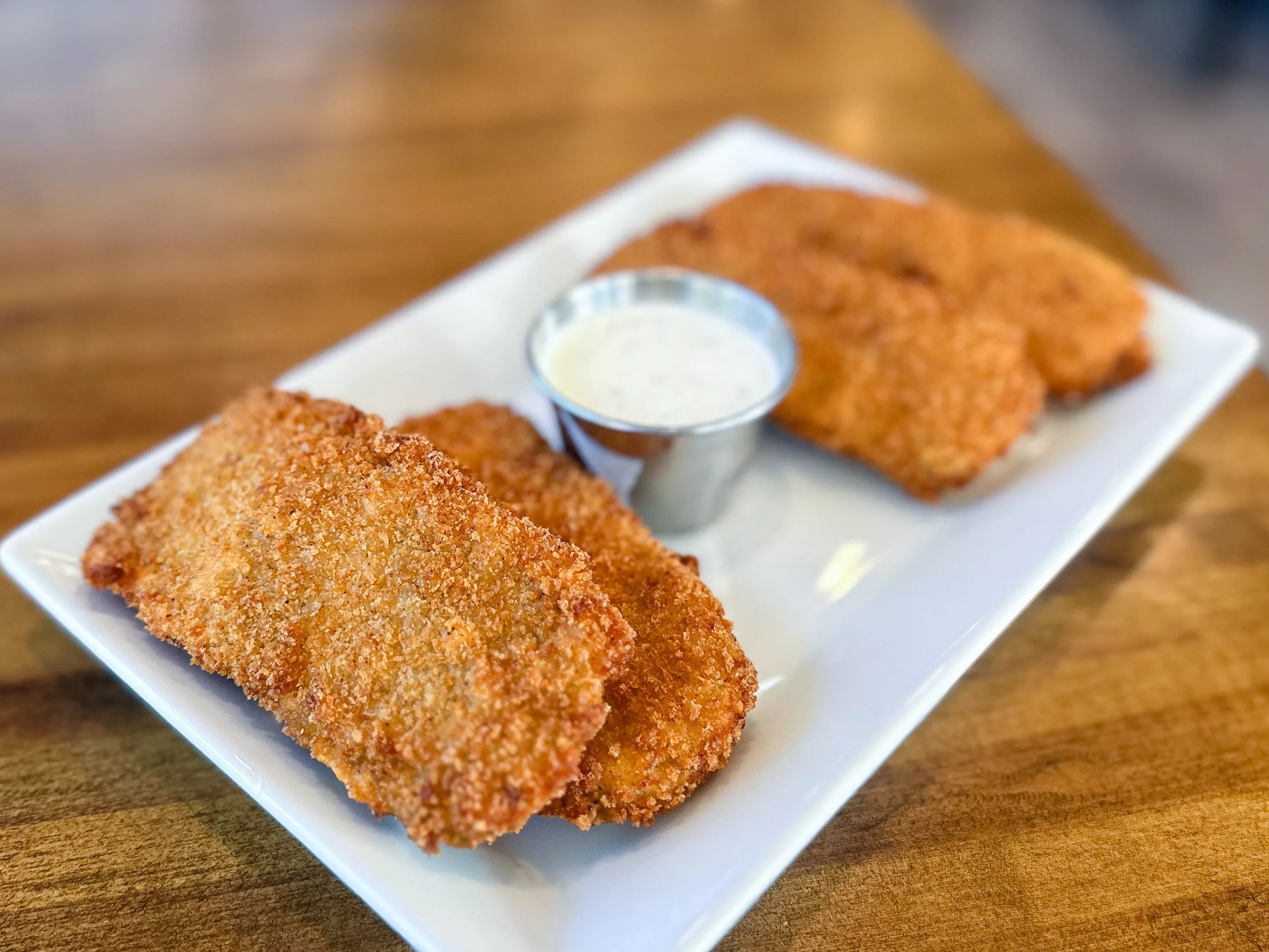 All the common appetizers found in such places are here: a variety of fried things such as pickles, mozzarella sticks and zucchini along with the ubiquitous chips and salsa, nachos and stuffed jalapeños. Nothing groundbreaking here, but it’s a burger joint. We tried the fried zucchini, which were long and thin slices and came with the requisite ranch dipping sauce.