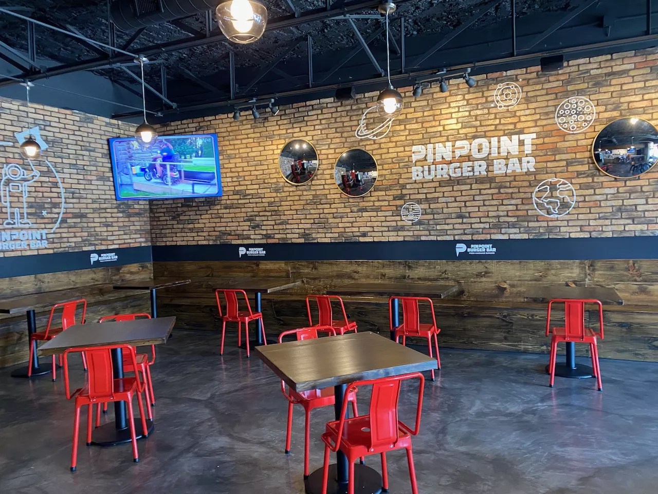 Pinpoint Burger Bar is a nice spot with an outer space theme and cool astronaut art.