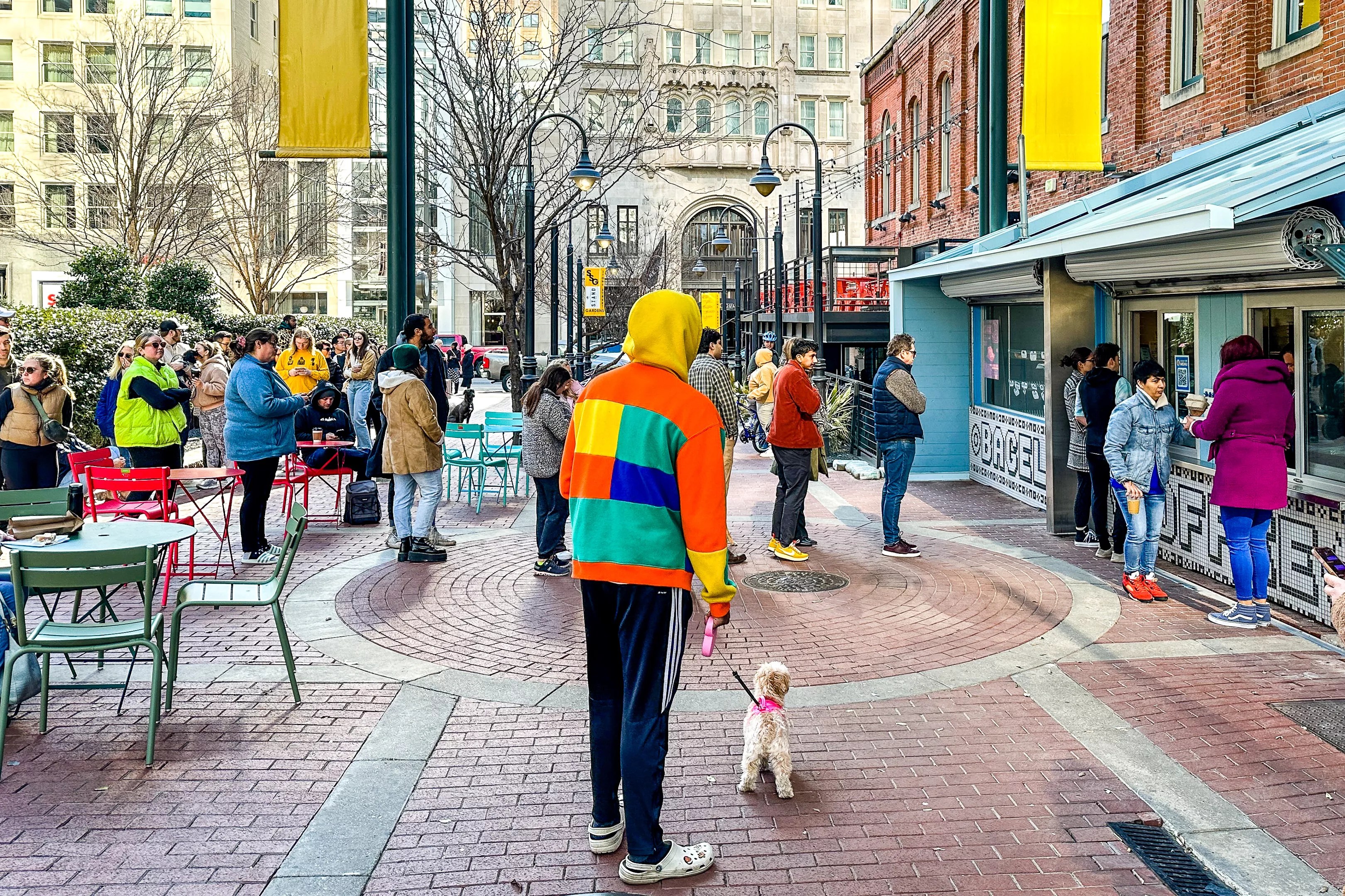 By 10 a.m., a crowd had already developed and some bagel varieties were sold out, but the dogs didn’t seem to mind.
