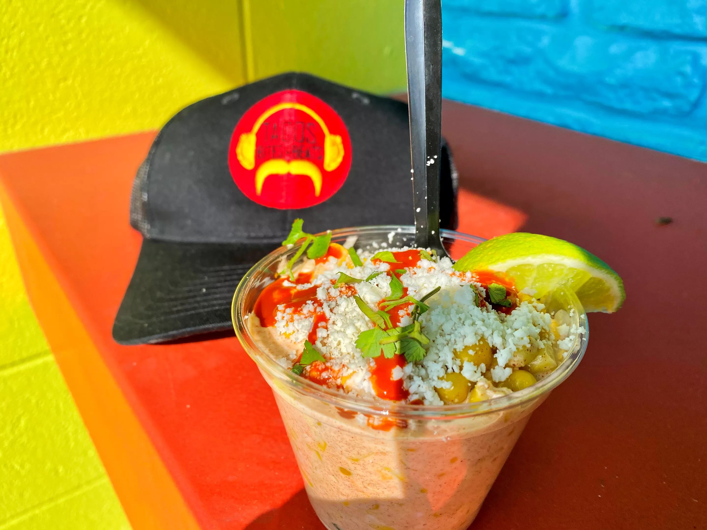 They serve elote in a cup ($3.75), which complements the tacos well; get them in an order of three for $8.50 with any of the proteins.