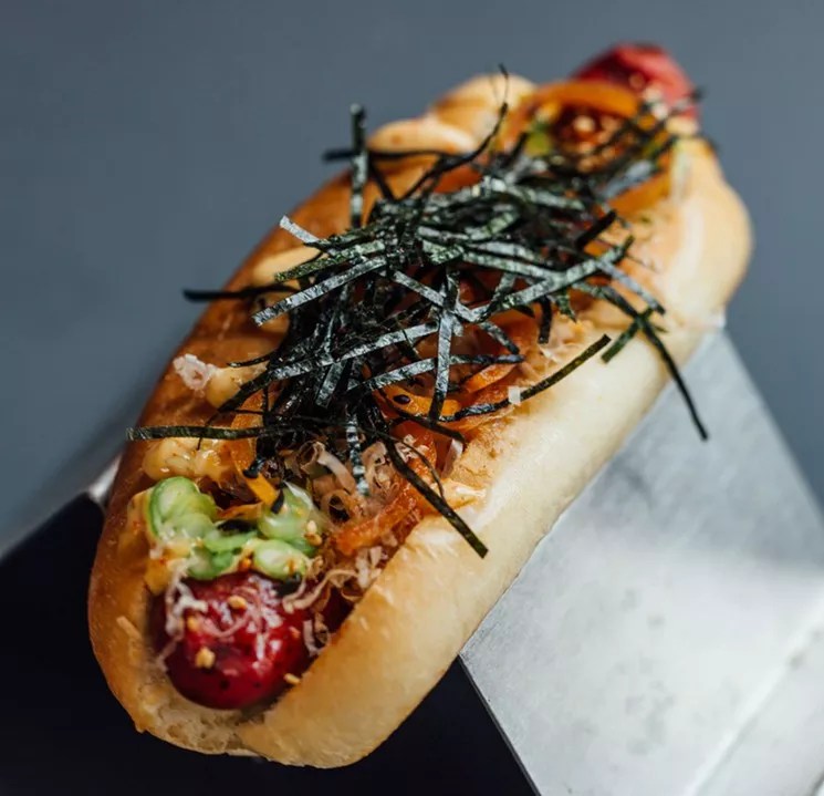 It may not be a classic hot dog, but that hardly matters. Sumo Shack’s Tokyo Dog is a delightful departure from clasic ball park franks. Made with a house blend of wagyu beef sausage and neatly piled with bonito flakes, scallion, caramelized onion and nori, this bad boy proves you can teach an old dog new tricks.