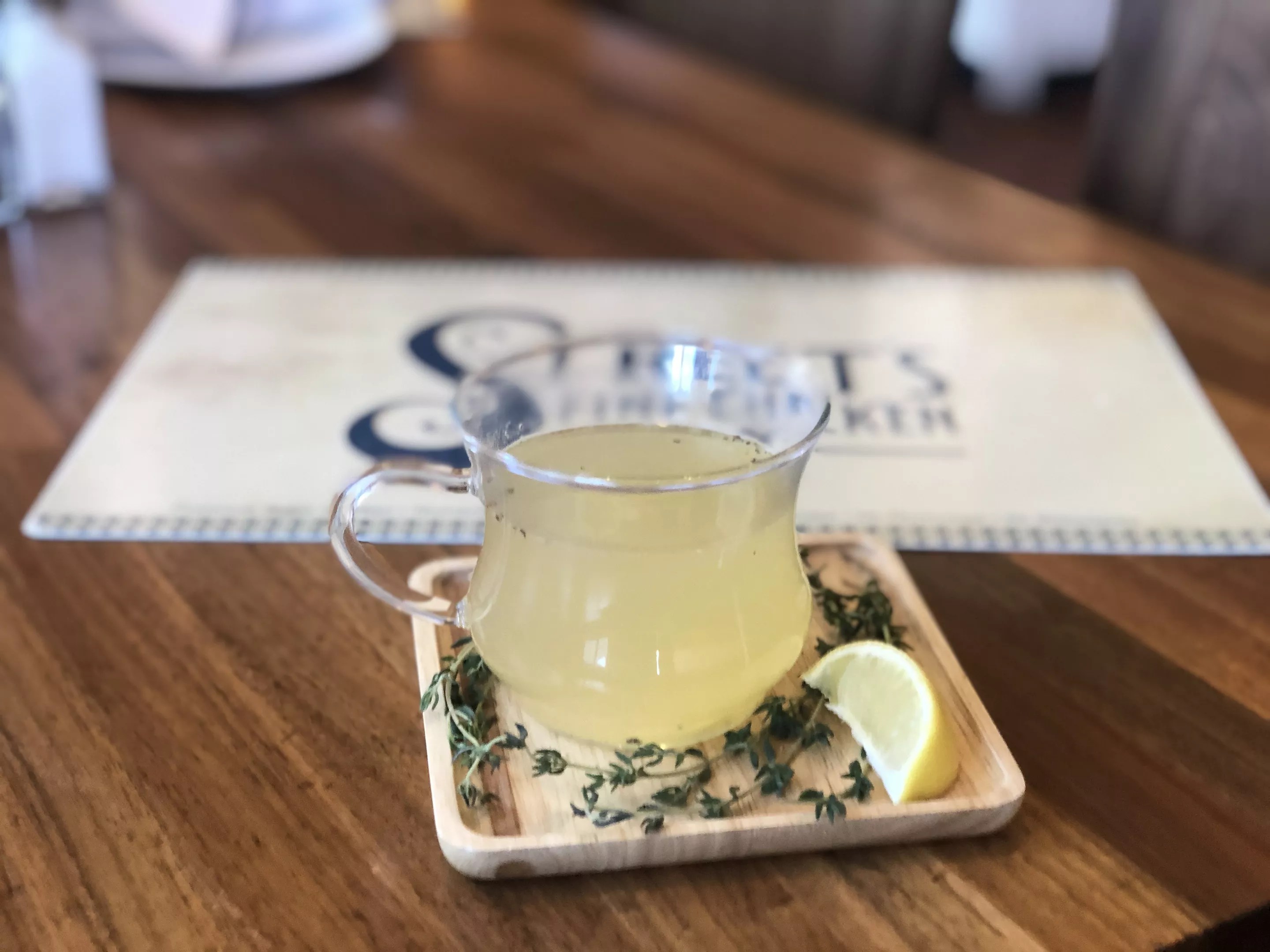 The Flu Shot ($7): Shochu, chicken stock, lemon, ginger, pepper