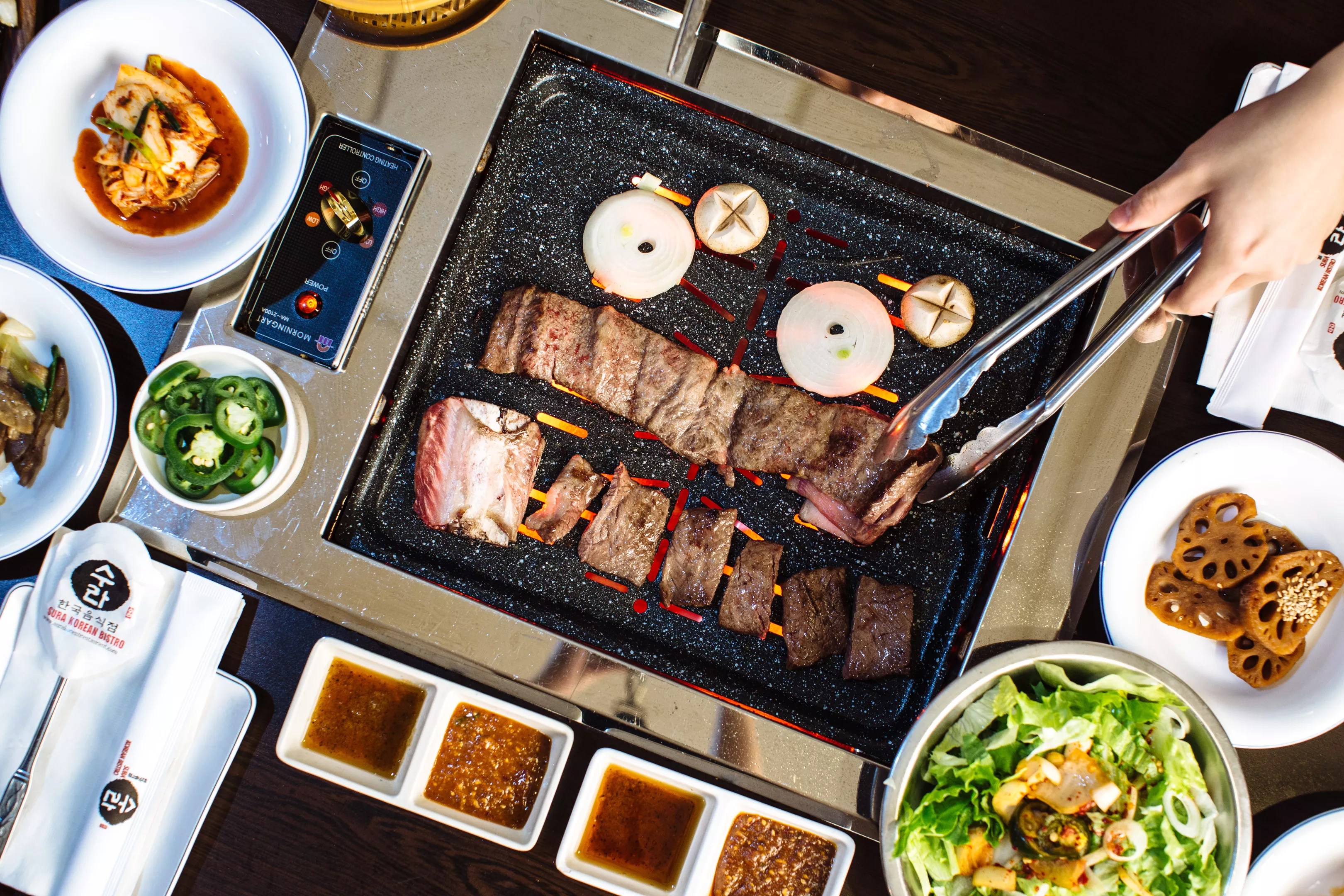 You can go fill up on grill-it-yourself-meat at Sura’s meat buffet, but the Korean restaurant issues a fee (donated to UNICEF) for taking more meat than you can eat.