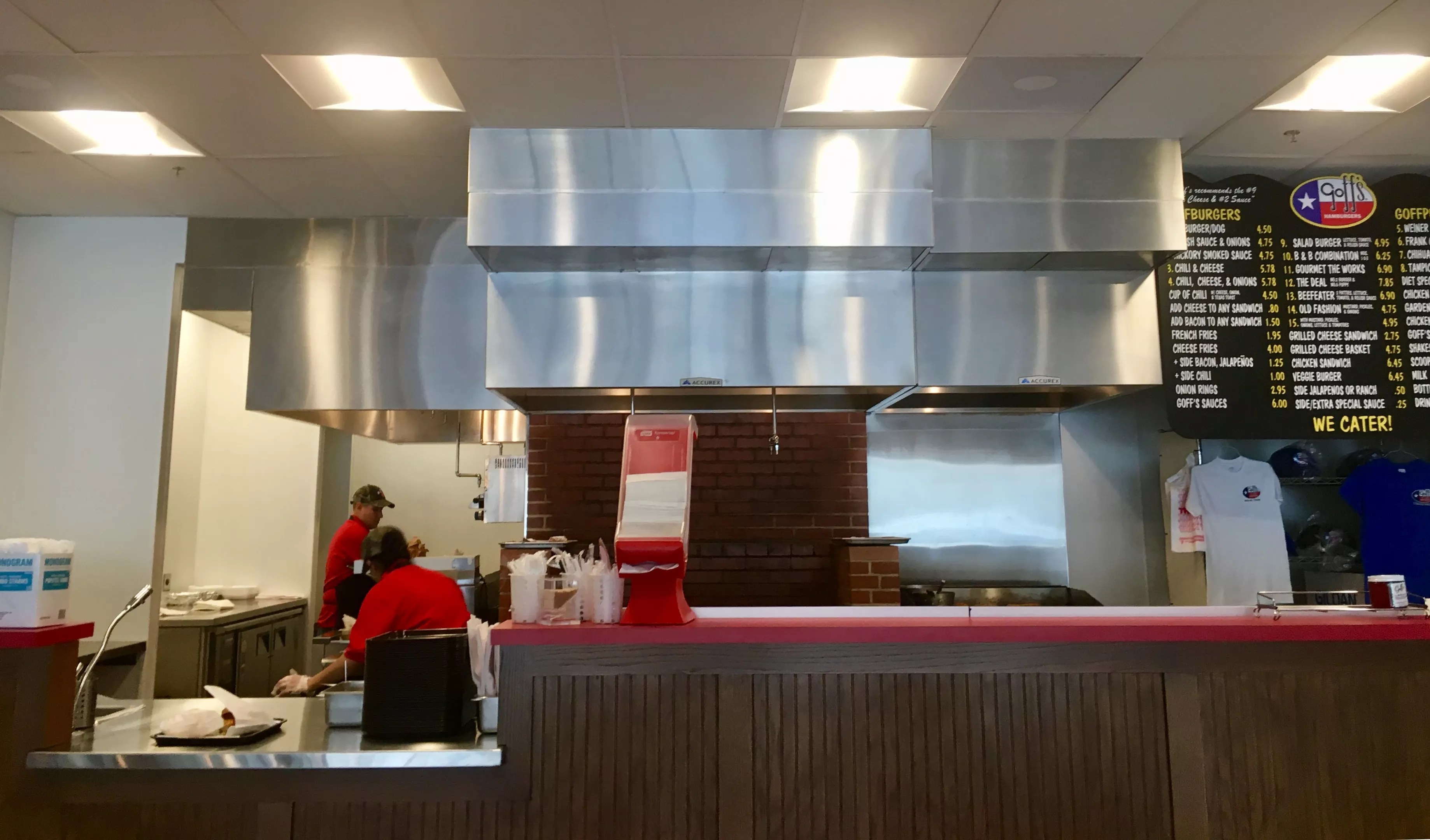 It’s quiet at Goff’s after lunch. Except for the hiss of the charcoal grill and the fry oil, which seethes with viscous bubbles the second the fries touch the surface, there’s a merciful and relaxed feeling in the nearly 70-year-old burger joint. A customer hurries up to the register to grab his paper sack of food, which he had clearly spotted before it was called out. He smiles.