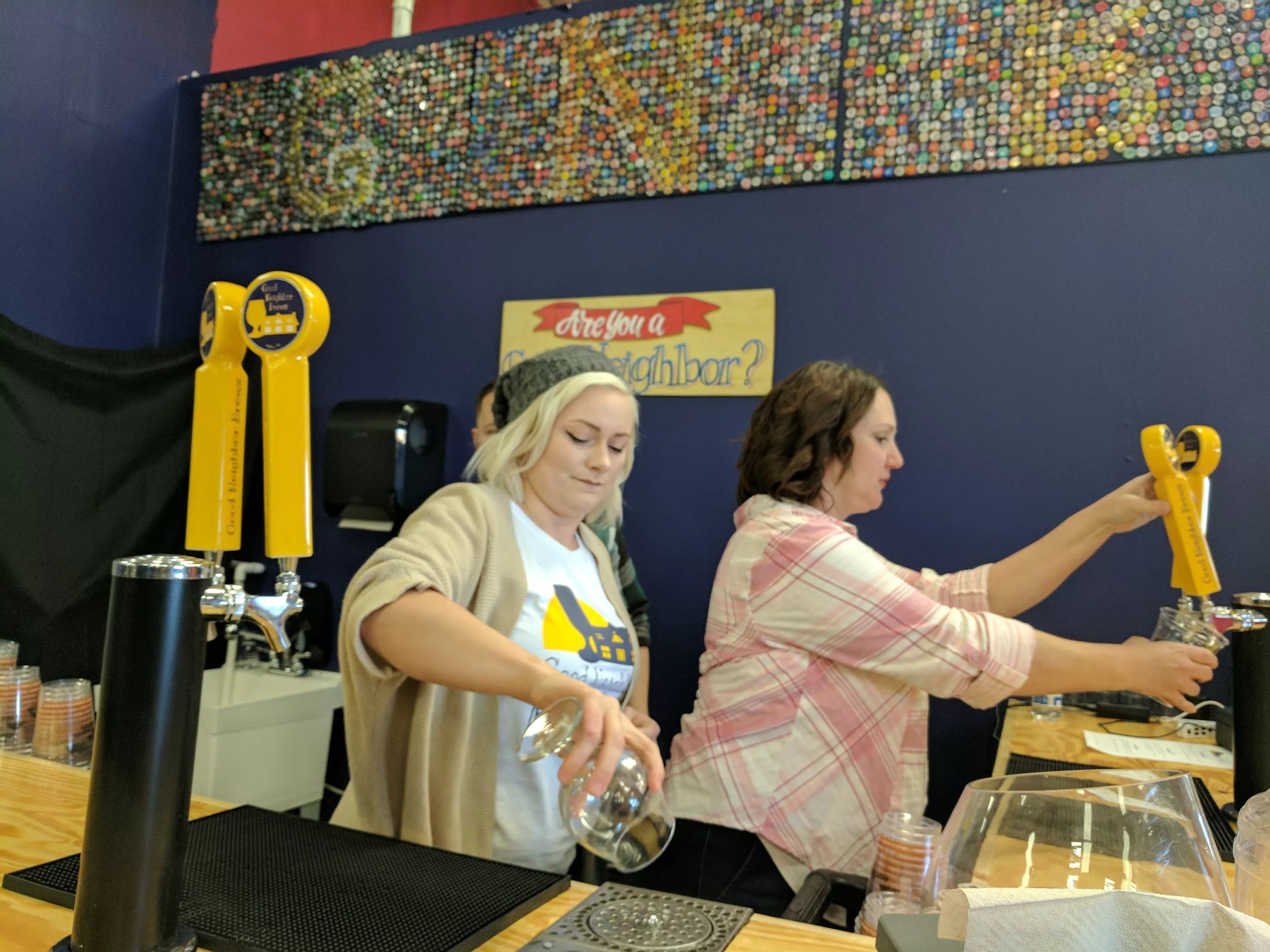 Good Neighbor Brews gets its name from the owners, who are only outgoing and friendly, and it represents the atmosphere that they hope to establish with their brewery; a place where people can bring their dog or kids while sitting on the patio having a beer with their neighbor.