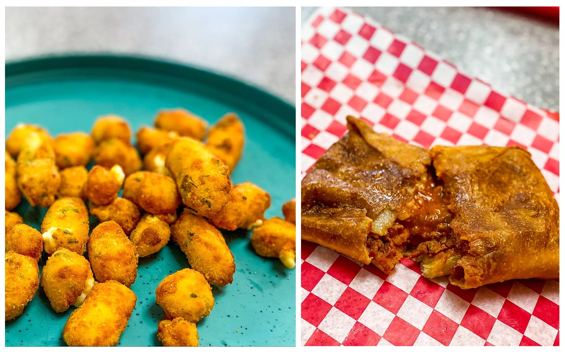 Fried garlic cheese curds and a pizza puff