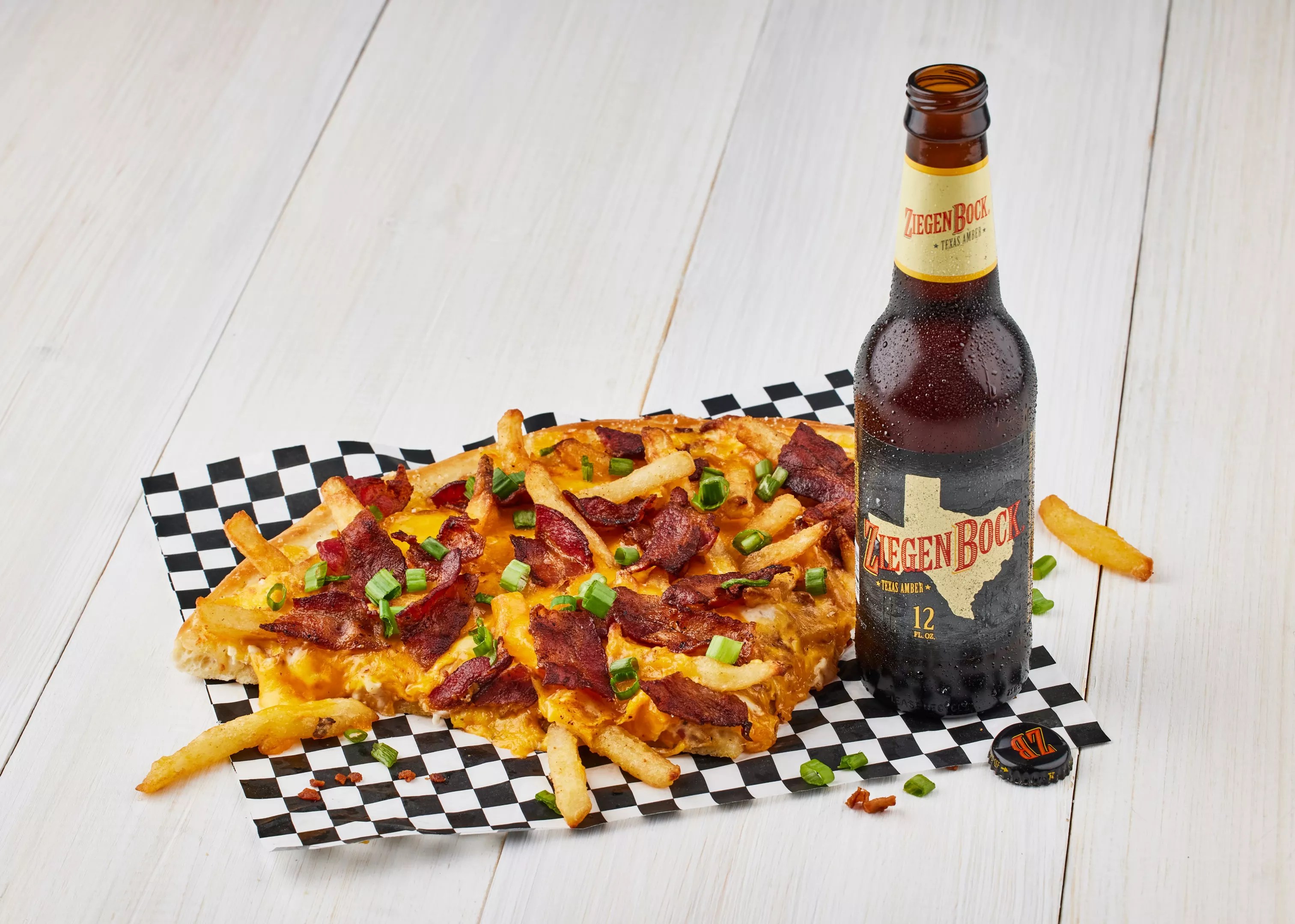 Vendor: Tom GraceHand-tossed pizza dough is stretched onto a 16-inch “pizza screen,” then loaded with buttermilk ranch dressing, mozzarella, french fries, cheddar cheese and bacon. Think loaded fries on a thin-crust pizza. OX’cellent Soul Roll. State Fair of Texas
