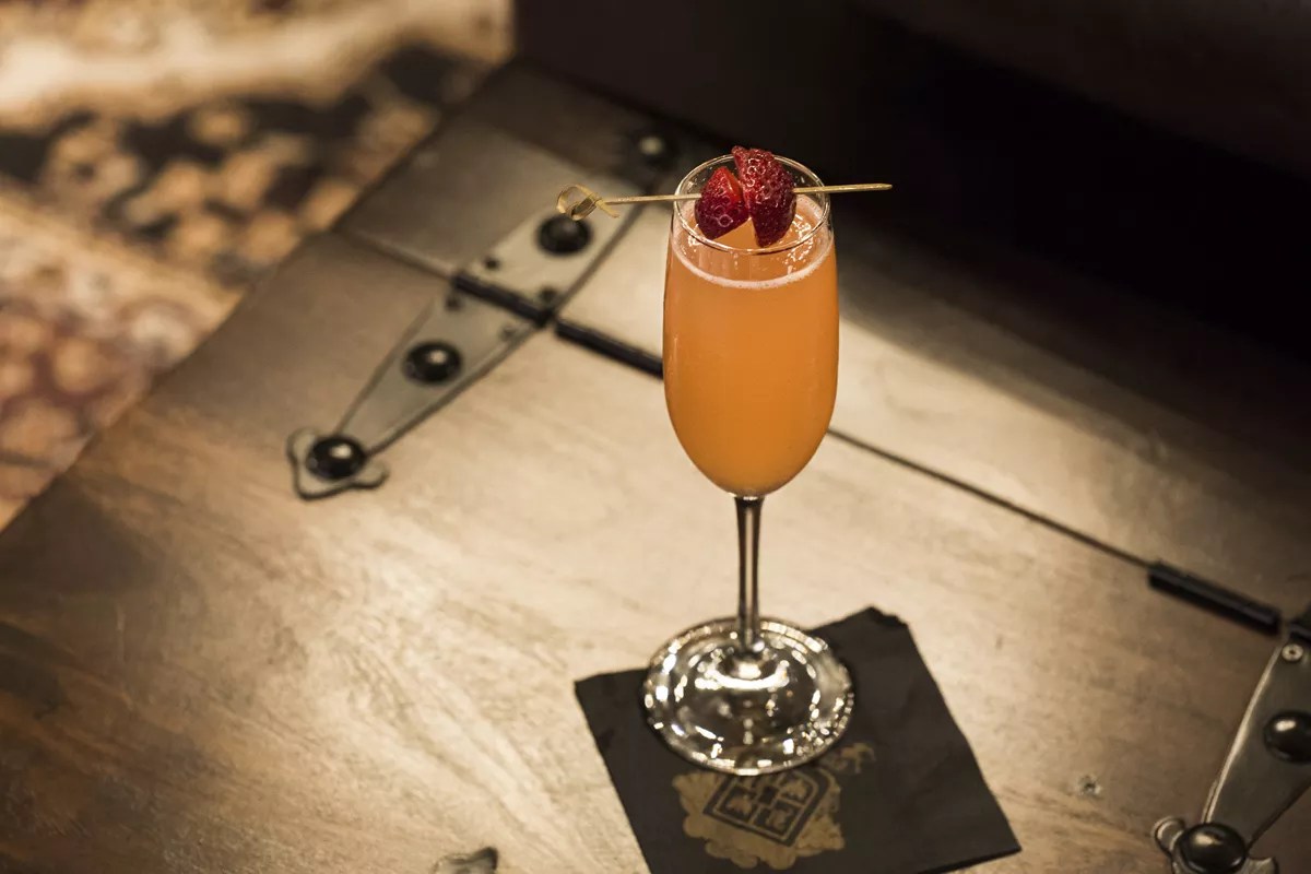 The 12 a.m. Alibi is made with vodka, strawberry cordial and sparkling wine.