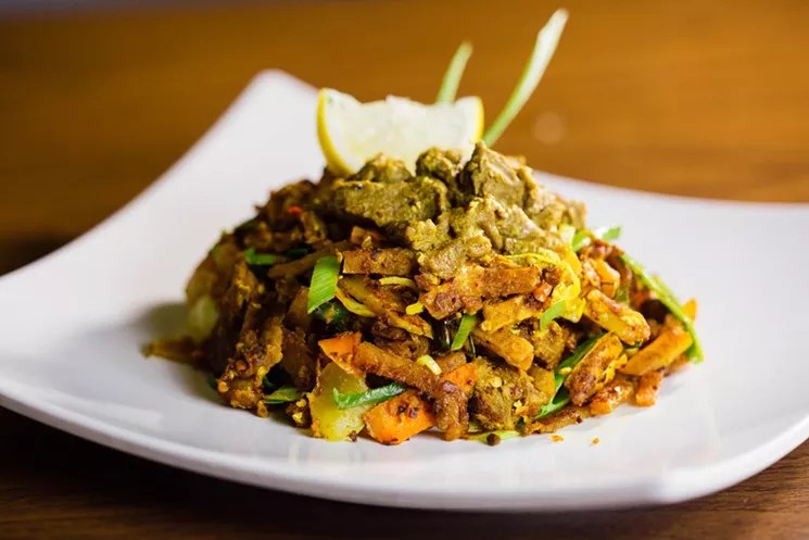 Kottu, a mixture of curried meat, vegetables and strips of flatbread, at SpicyZest.
