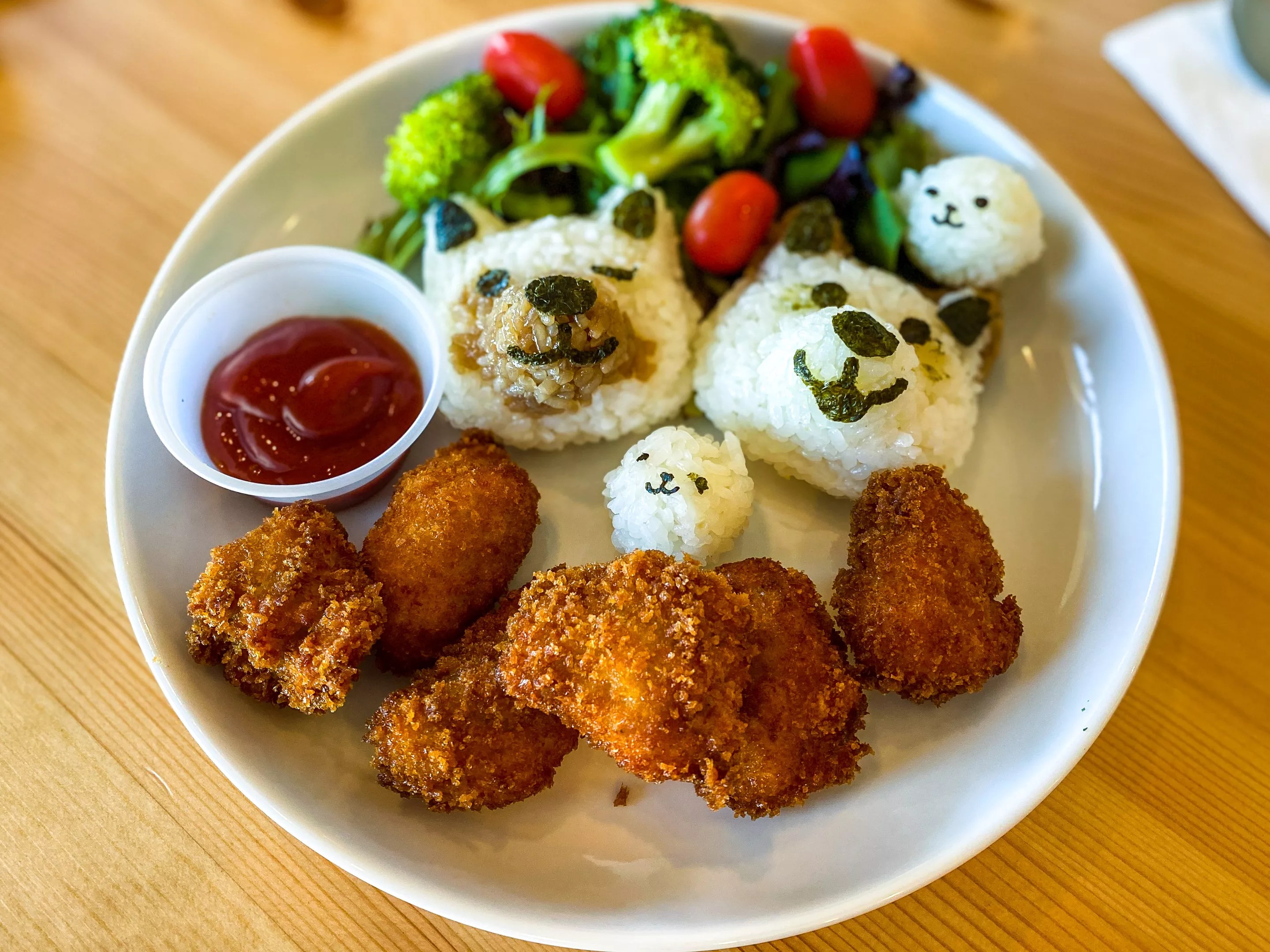 Having no children in our party didn’t stop us from ordering the Katsu Nuggets from the kids’ menu, because who doesn’t like rice molds in the shape and likeness of a shiba inu? They are served with breaded chicken Katsu Nuggets, seasonal vegetables and spring mix salad. The presentation didn’t disappoint; it was a cute and happy-looking plate staring back at us. Not bad tasting, either, but we were here for the doggies.