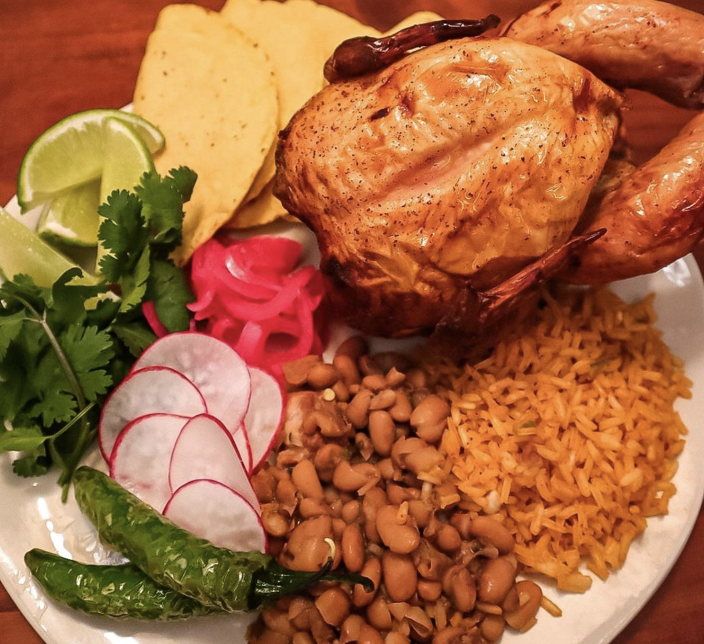 Expect to see chicken, of course, available whole ($30) or in half ($20). The roasted chicken is served with charro beans, Mexican rice, tortillas and salsa. And because there was one tiny piece of good from 2020: You can get cocktails to go, such as a hibiscus margarita on the rocks ($8).