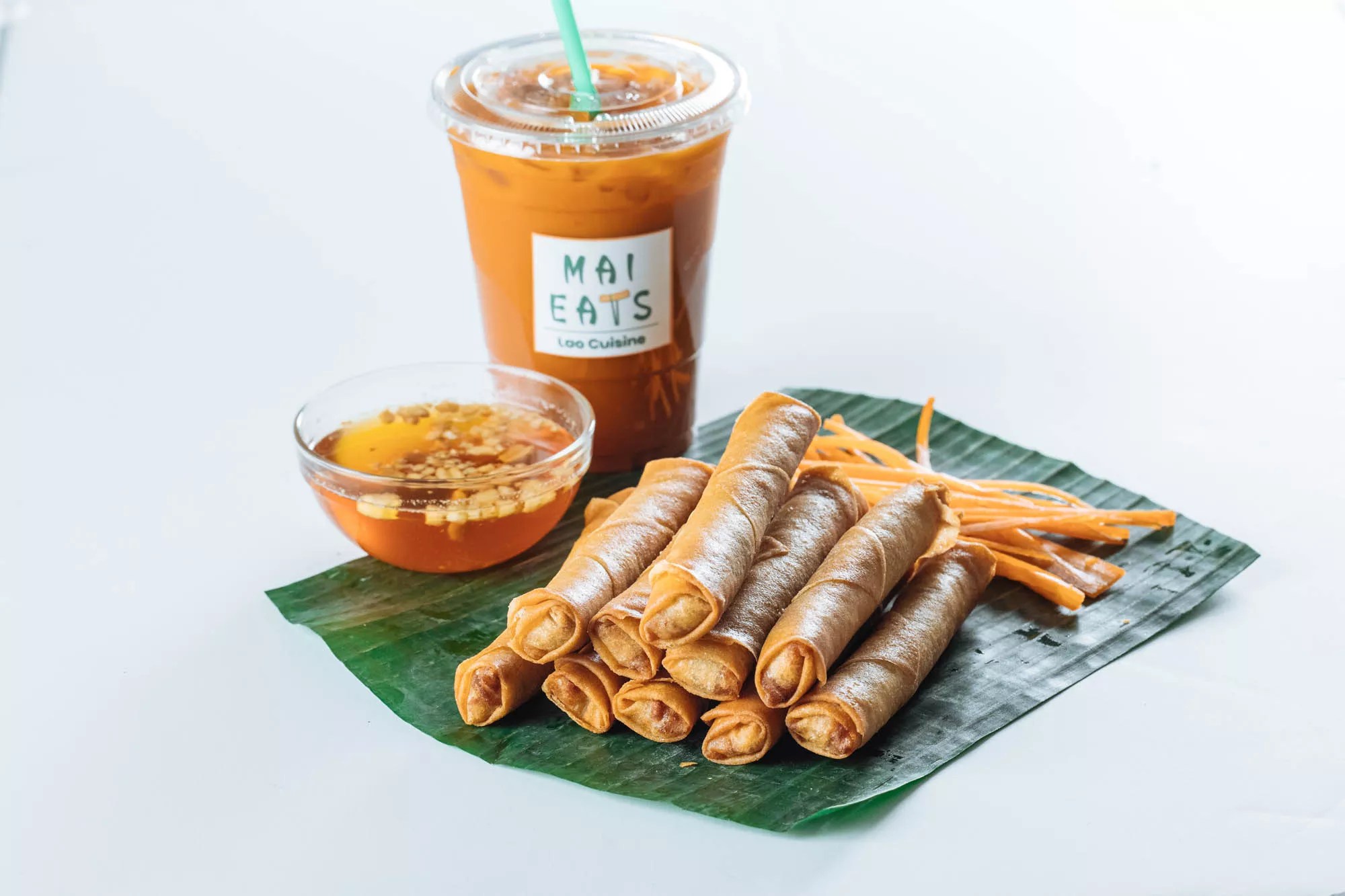 “Mai Eats is named after my sister,” she continues. “Growing up, she was always the perfectionist when it came to rolling the perfect rolls. She kind of taught me the secrets, so I named it in her honor. It’s a family recipe. Everybody has their own version, and this is ours. They’re hand-rolled, and we make them weekly.”