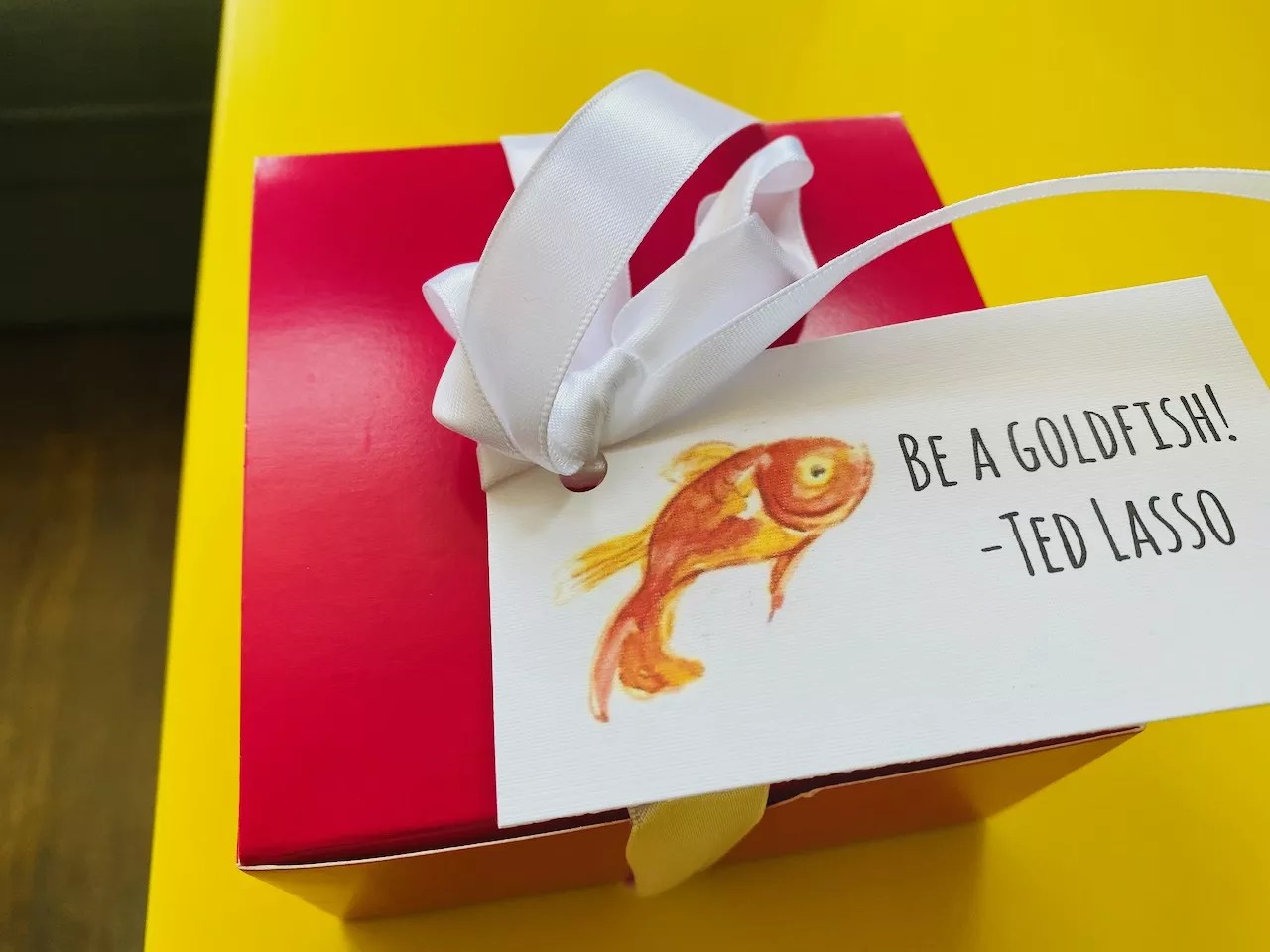 Local baker Cathy McEachern of Lemma’s Bake Shop cleverly seized the opportunity to bake Lasso cookies, which are similar to Southern tea cakes. They come in a box of two, wrapped in delicate tissues just like on the show and have a Lasso-esque quote. Like “Be a goldfish,” referring to a scene in the first episode in which Lasso explains to a young player that a goldfish is the happiest animal in the world because it had a 10-second memory. Be a goldfish and move on. Let it go.