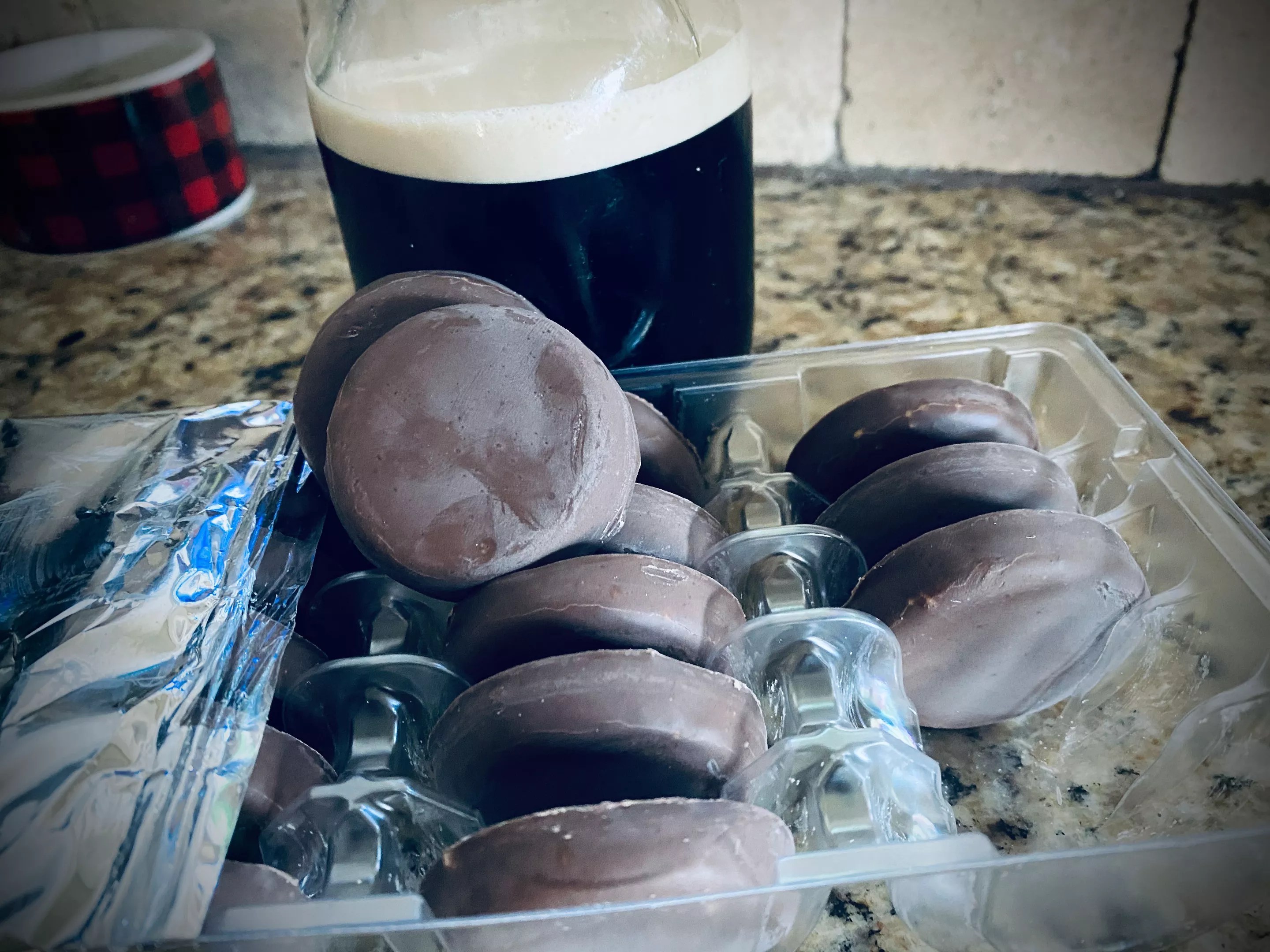 Peanut Butter Patties (Tagalongs) or Peanut Butter Sandwich (Dosidos) + Rahr’s Winter Warmer