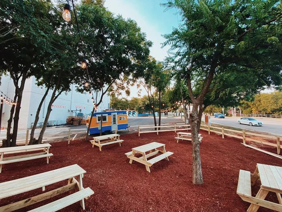The newly installed beer garden at Oak Cliff Brewing Co.