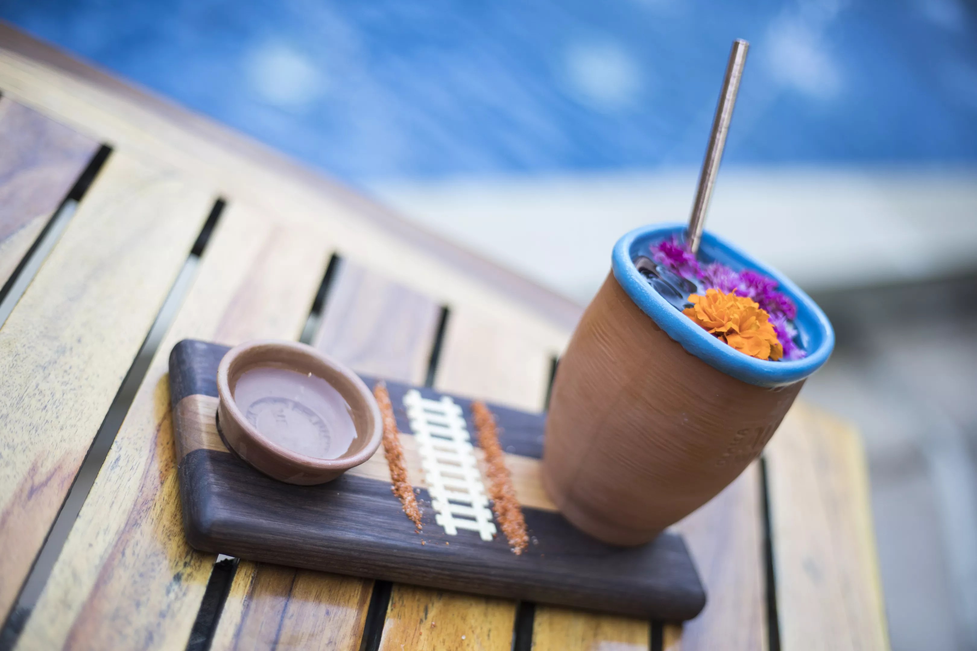 Tejas Railroad ($20): Olmeca Altos Tequila, Del Maguey Vida Mezcal, seasonal Tejas Fresca and Tajin chili powder