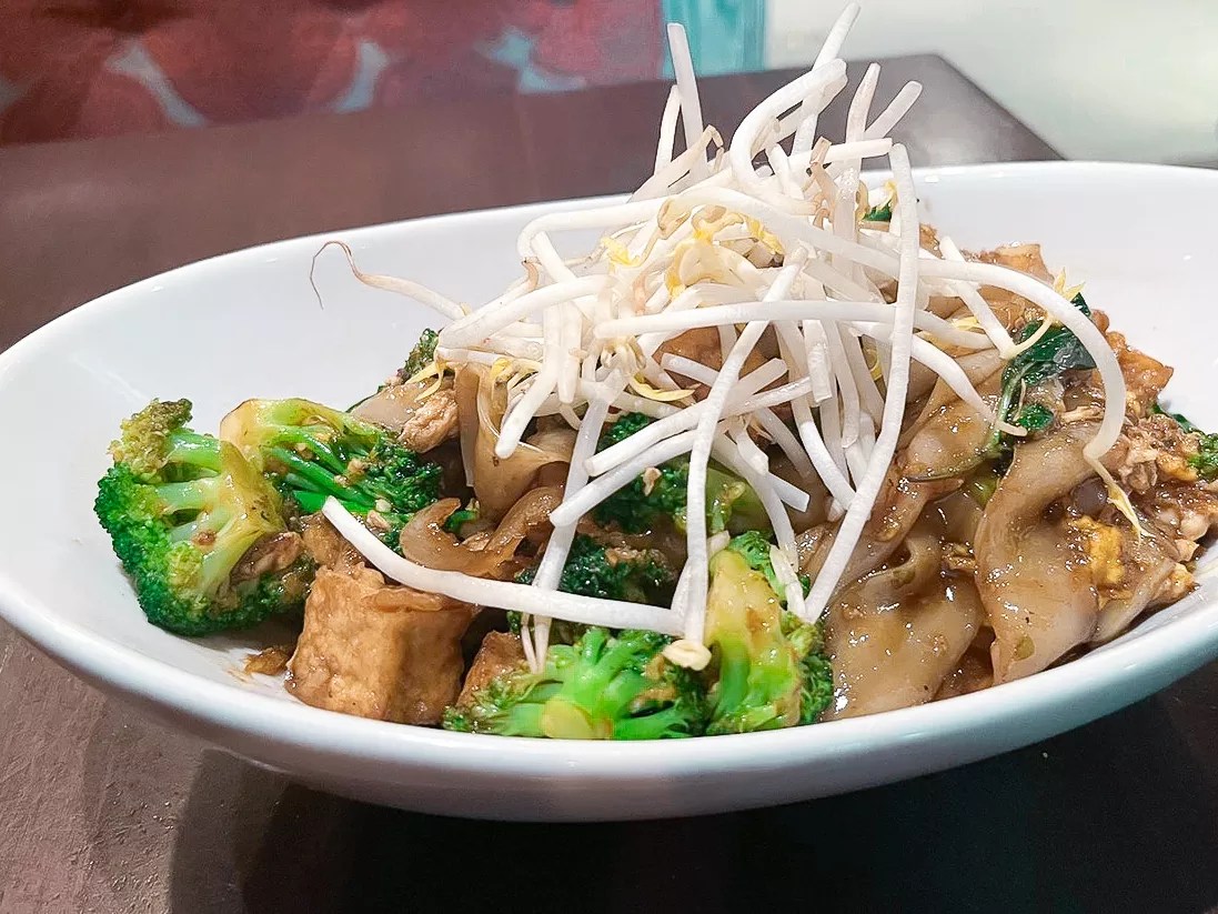 The pad see ew or pad kee mow are both good places to start. Dig your fork into a mountain of chewy machine-made noodles soaked in a spicy or sweet soy sauce. Chopped tomatoes, onions, bell pepper or broccoli are generously tossed inside. While the flavors are rich, the noodle texture is what steals the show.