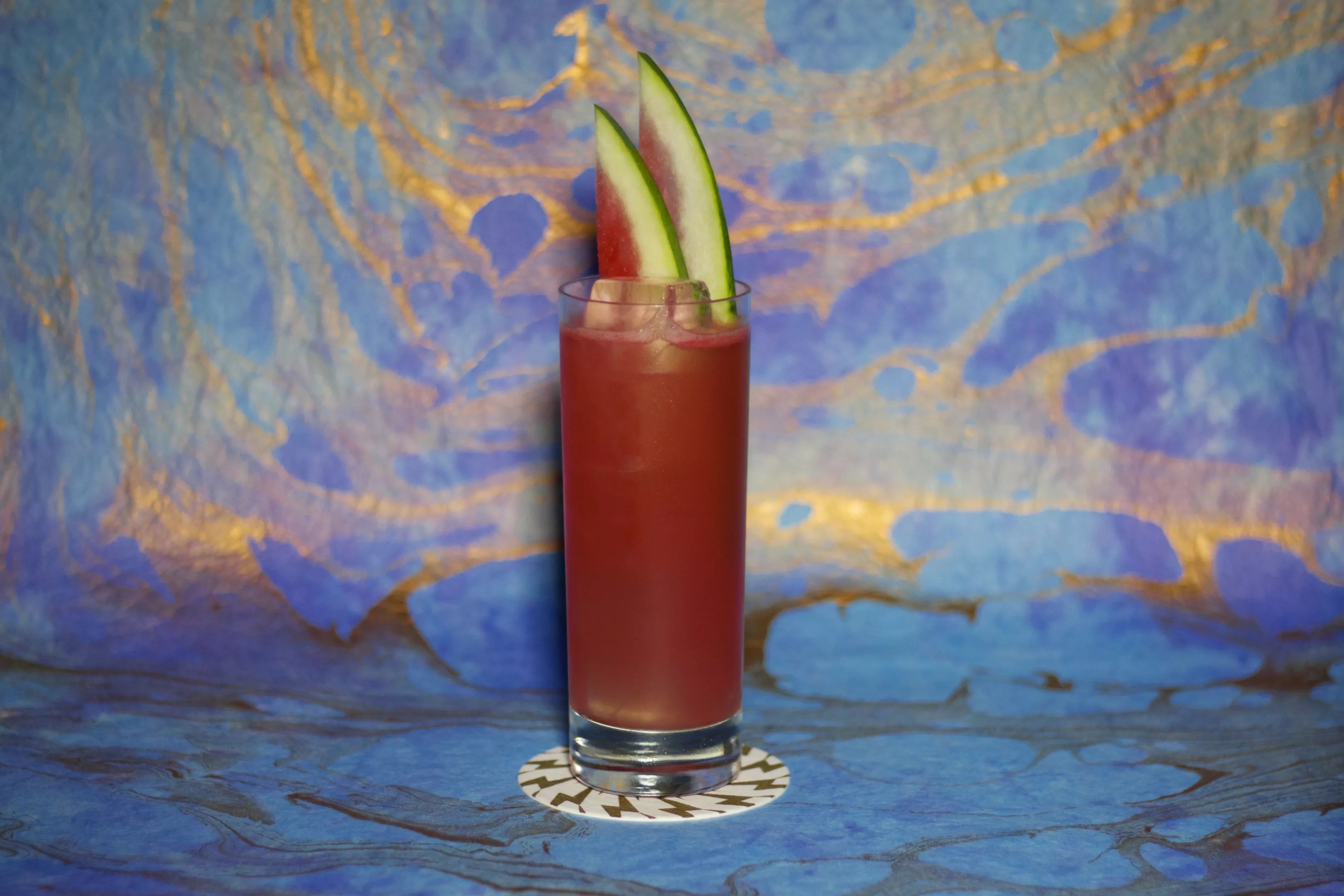 1000W Thumper ($12): London Dry Gin, watermelon, lime, Angostura bitters, soda, dehydrated basil infused with absinthe via sous vide