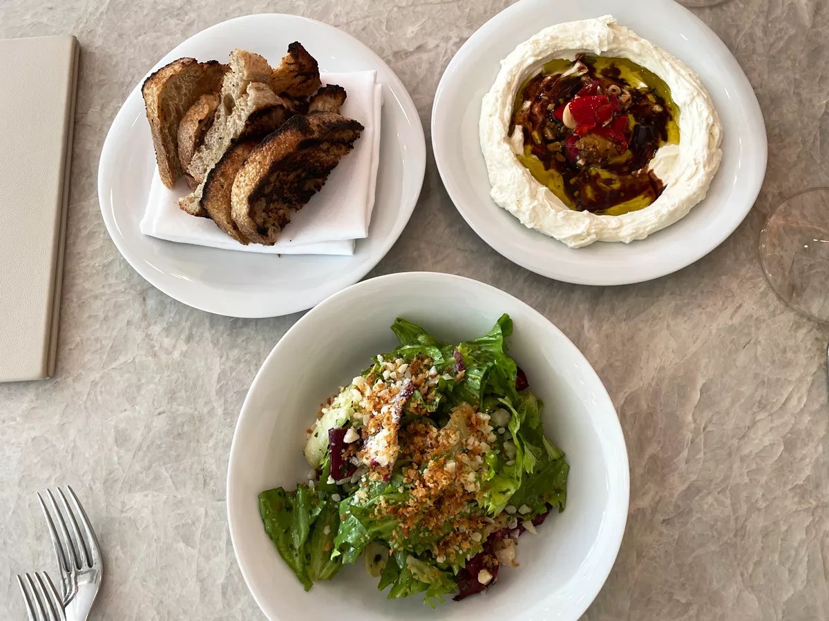 Whipped ricotta, freshly baked bread and escarole caesar salad at Mirador.