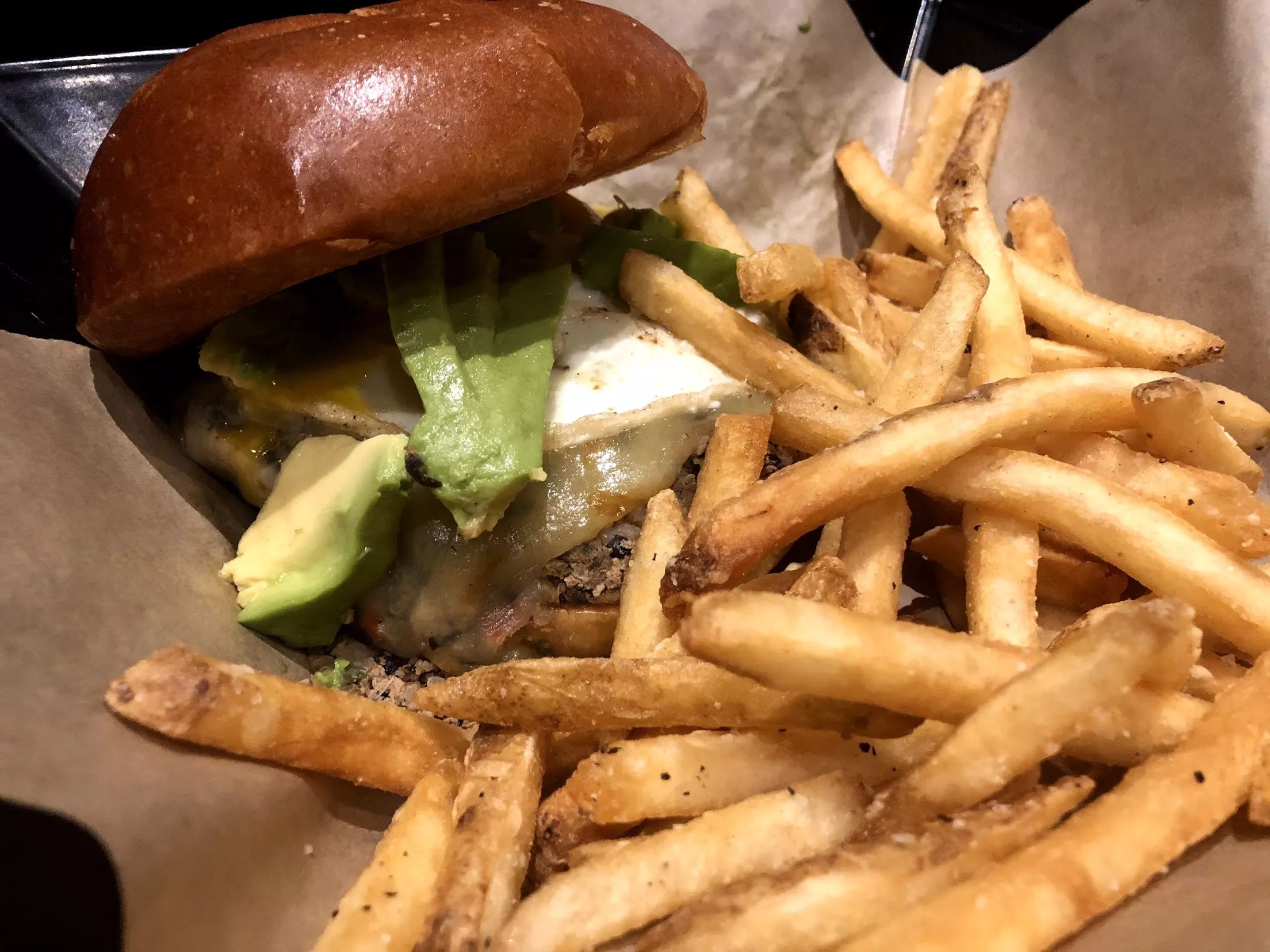 Another good option for the fryers in the world is the Farmhouse Burger ($13.50). Do not worry, you can substitute the fresh-ground beef for a turkey or veggie patty. The burger is then topped with smoked white cheddar, house-smoked bacon, a sunny side up egg, avocado and pesto aioli. This entreé can be served with a choice of fries, sweet potato fries or tater tots.