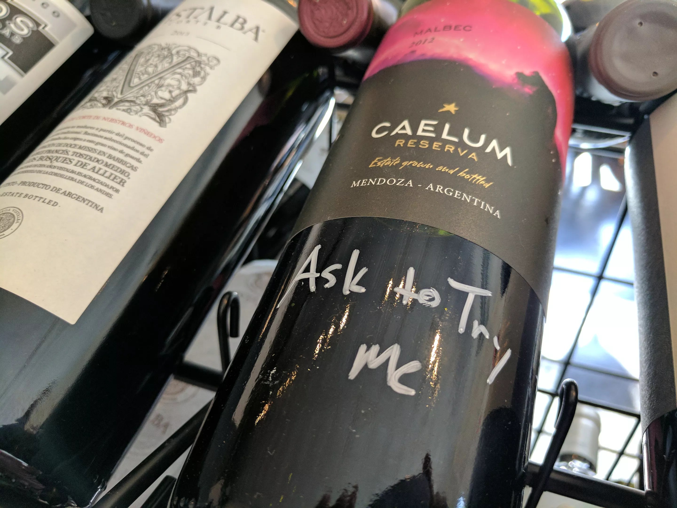 That egalitarian impulse might ruffle one or two feathers, but Neighborhood Cellar is based on it. “Something I’m pretty passionate about,” Mulenos says, “is I love shattering the notion that many people have that, they’re not talented or versatile enough to enjoy [wine], and they’re not rich enough to enjoy it. It’s been very pleasurable to me to find out that that’s bullcrap, because I’m not rich and I don’t have a palate up to the level of a second-level sommelier.