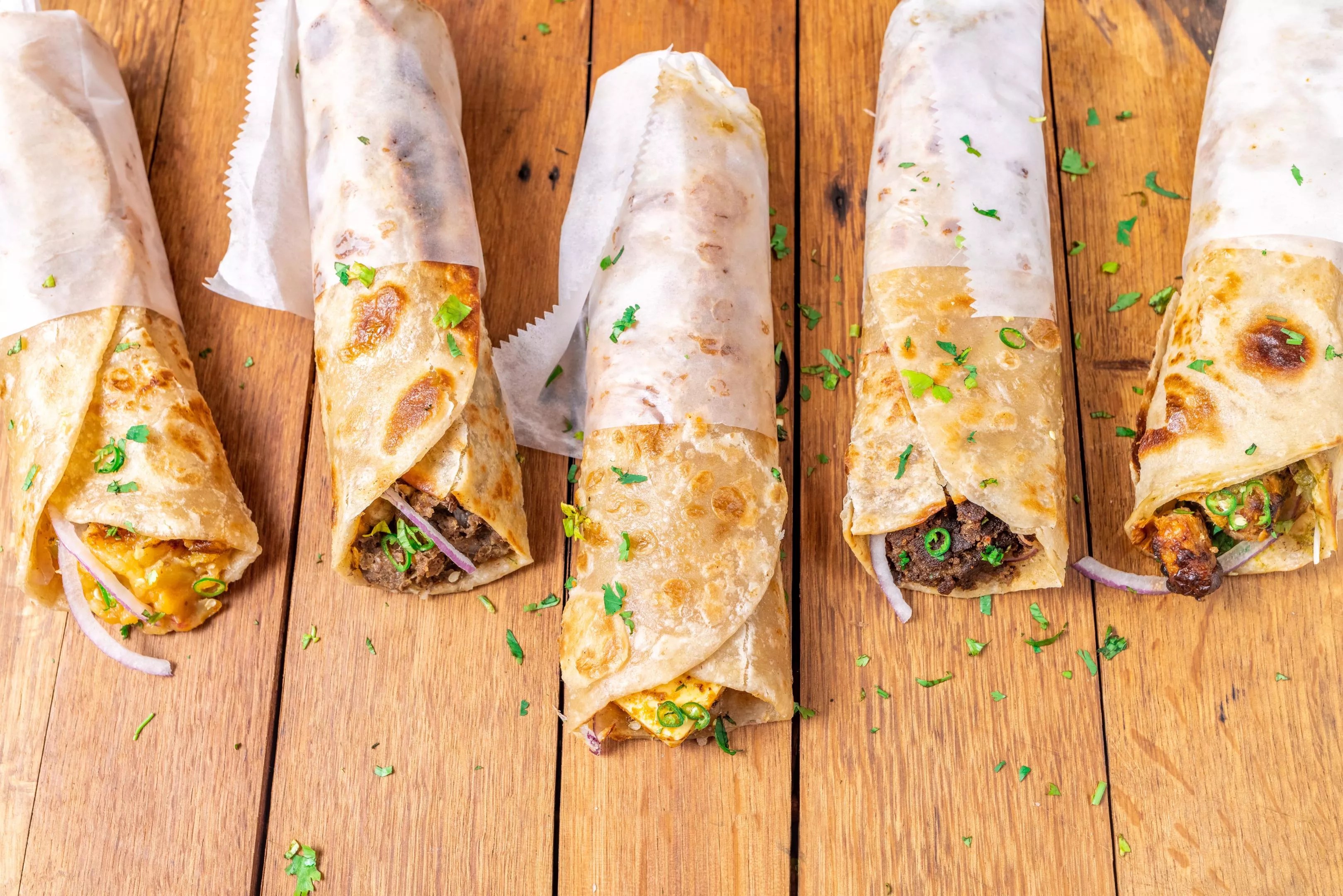 Kati rolls are made up of meats and vegetables that are grilled on skewers before being nestled inside the diners’ choice of paratha or roti – both Indian-style flatbreads – then topped with chutney and spices.