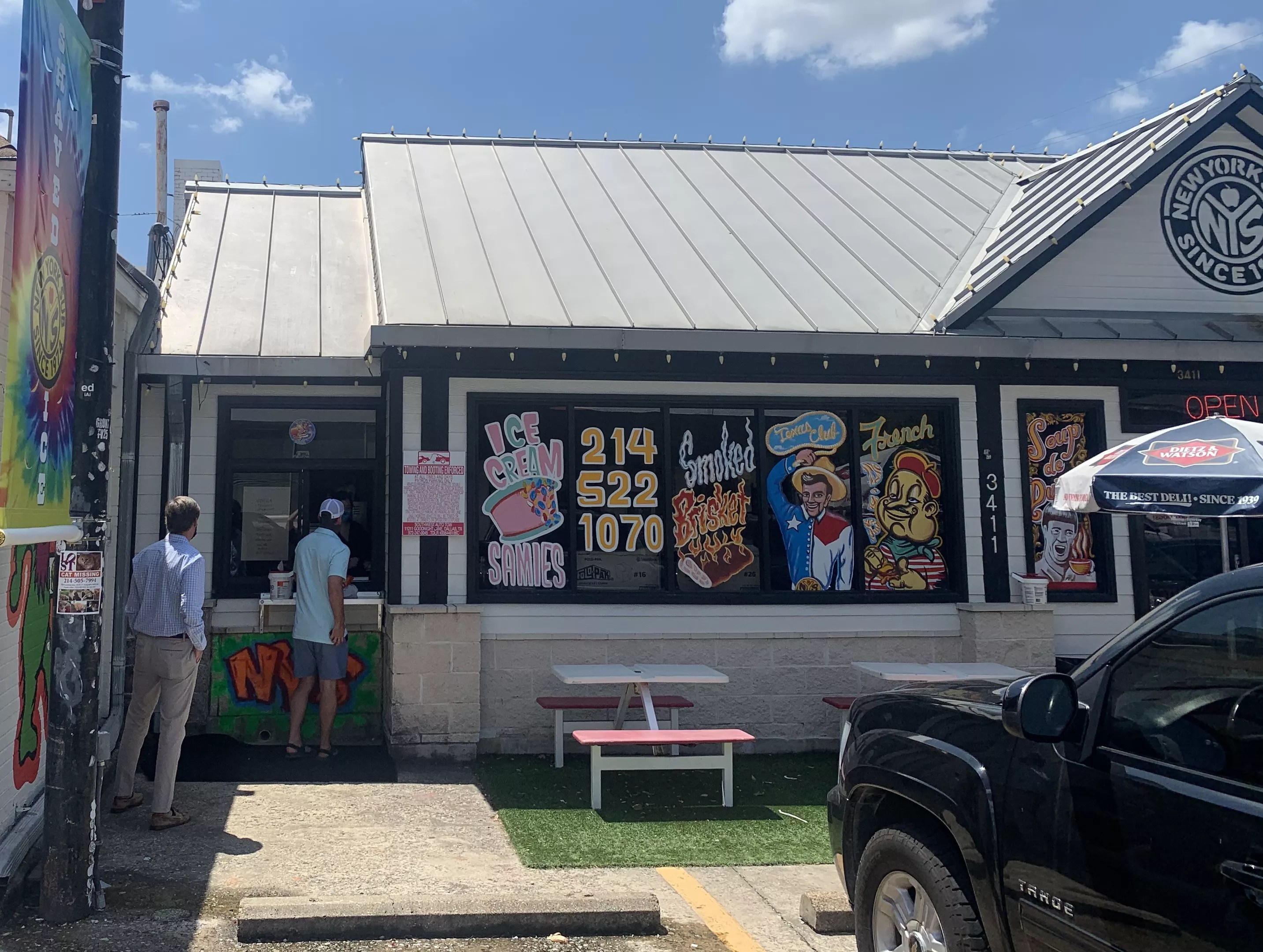 Midday in August in Dallas is sensational hot dog weather; it’s dragon-breath hot, and the astroturf outside New York Sub is achingly green.
