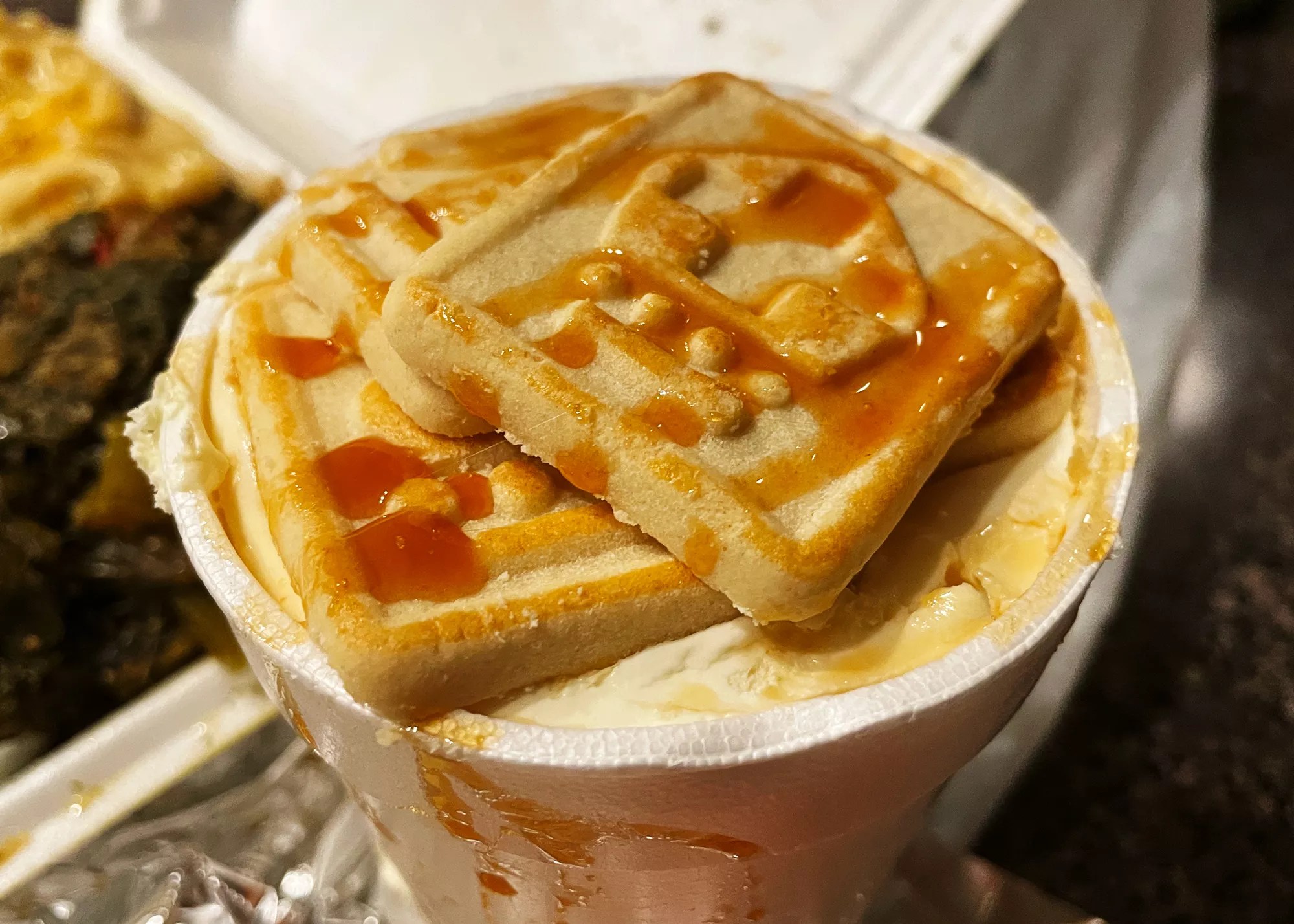 A full styrofoam cup of banana pudding. Would ya just look at it?