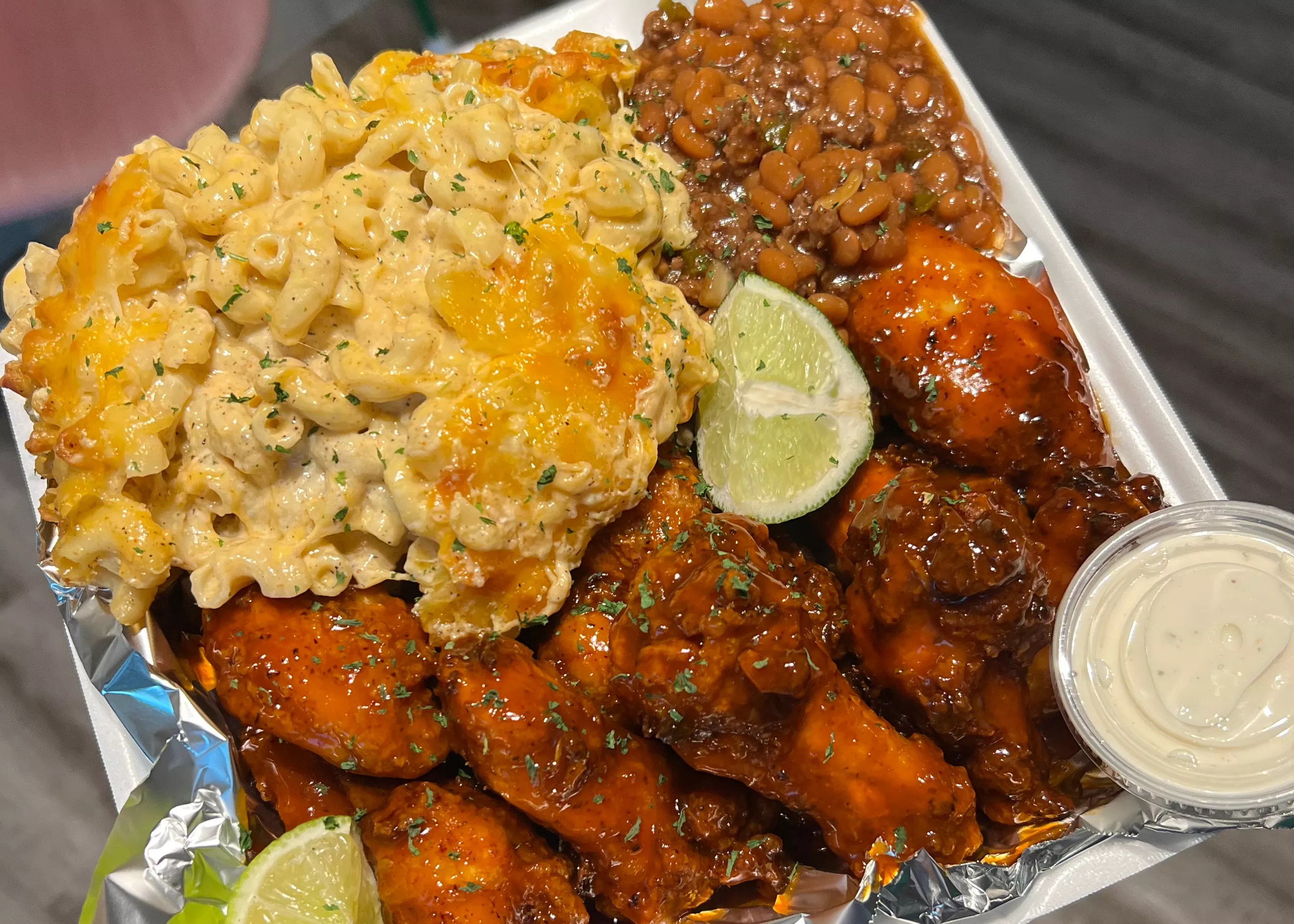 She told us most people are coming from inner city Dallas to pick-up, so when you get your food there’s a buffer from when it’s completely fresh. A few minutes in the air fryer will resurrect the wings and everything else just needs a little nuke in the microwave or reheating on the stove. No leftover vibes here.