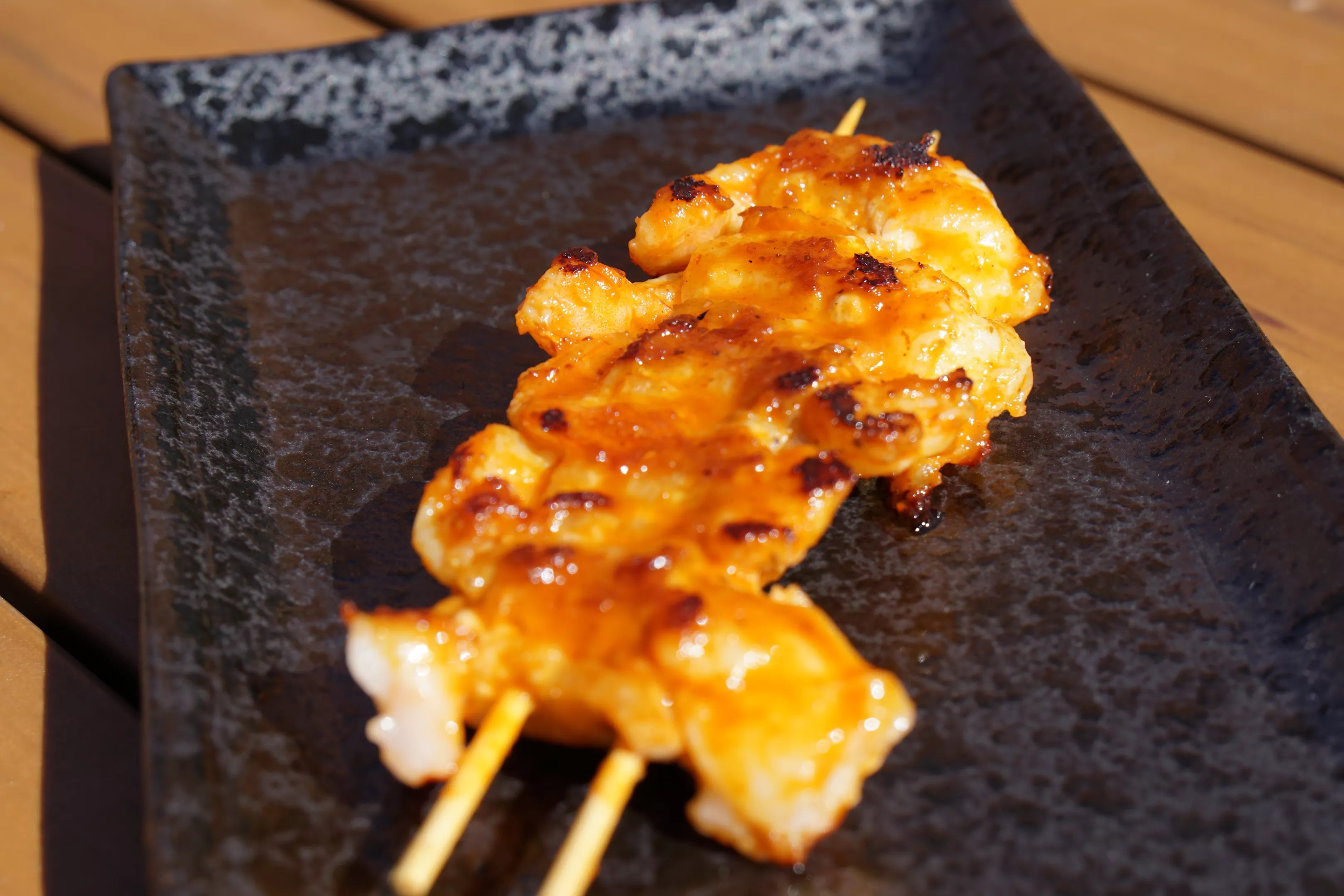 Shrimp skewers, glazed with a spicy miso and sesame sauce, are less than 10 bucks.