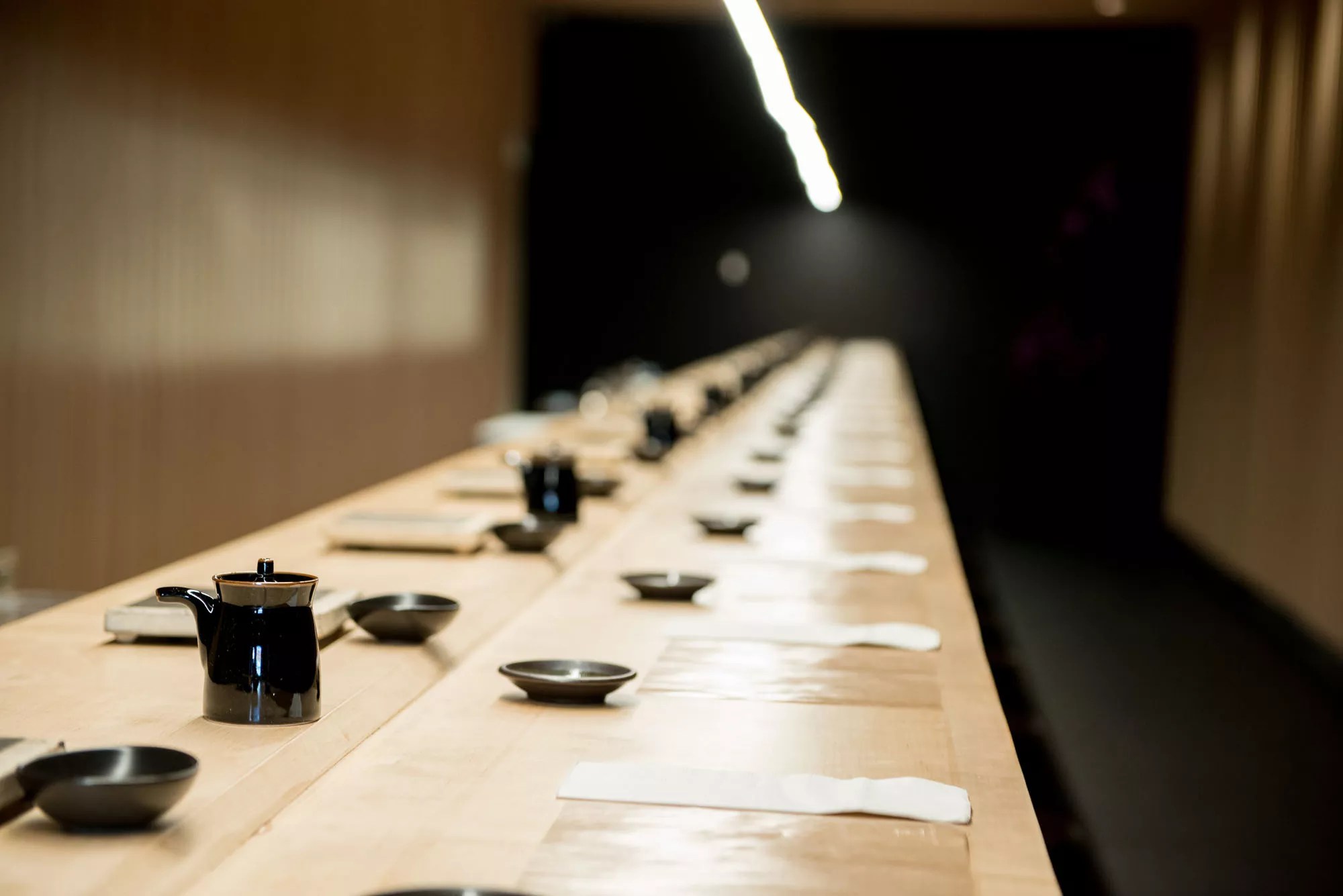 American diners are used to treating sushi with reverence. We gravitate toward sushi bars with monastic interiors and near-religious reverence for the chefs. We spend over $100 per person to taste carefully paced courses of seafood in stark preparations. We pause to savor every bite, and some of us pose our nigiri for cellphone cameras.