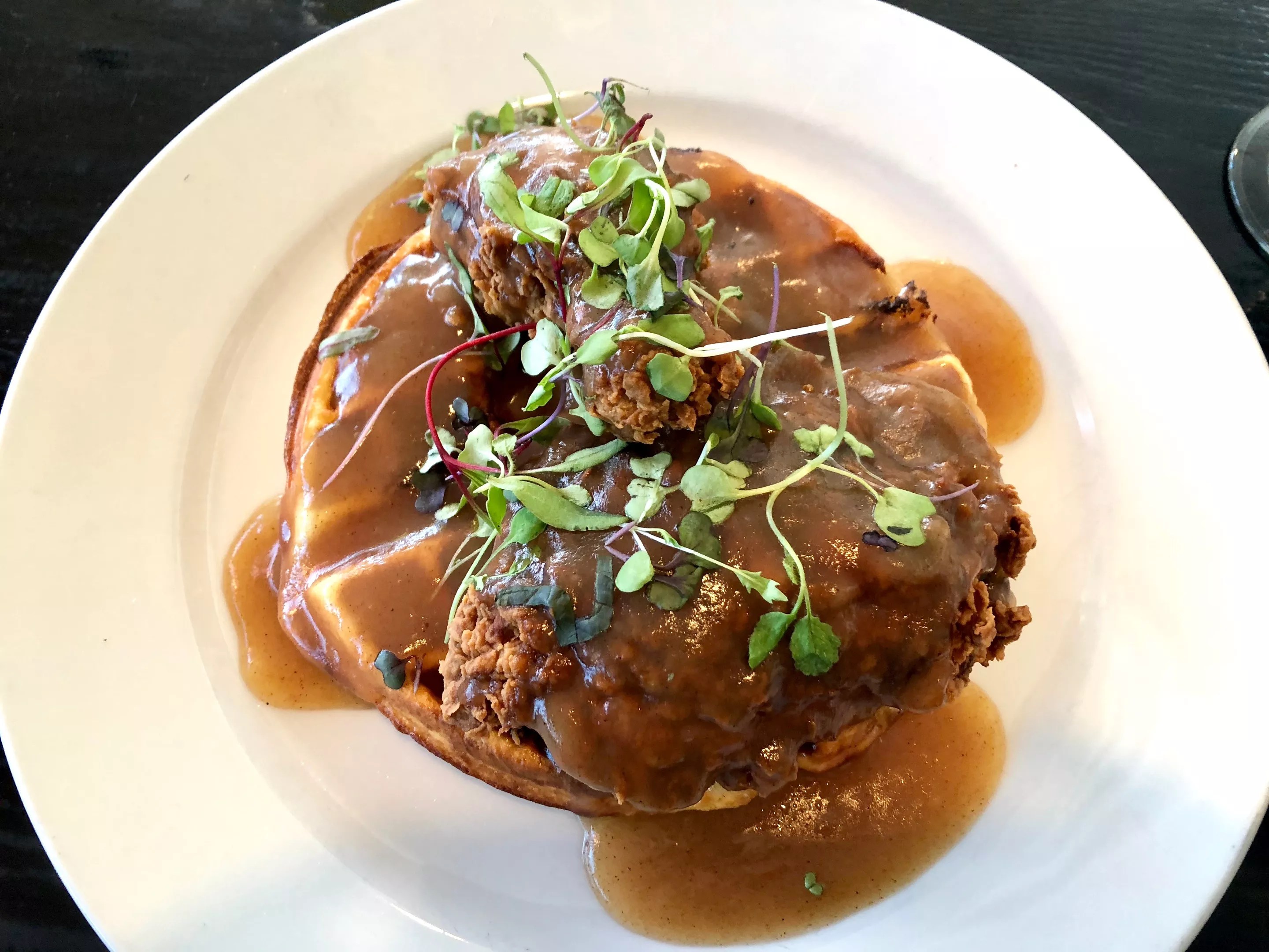 The flavors of the chicken and waffles at Nova are almost spot-on. The apple-cinnamon gravy just proves to be a little too sweet and far too present.