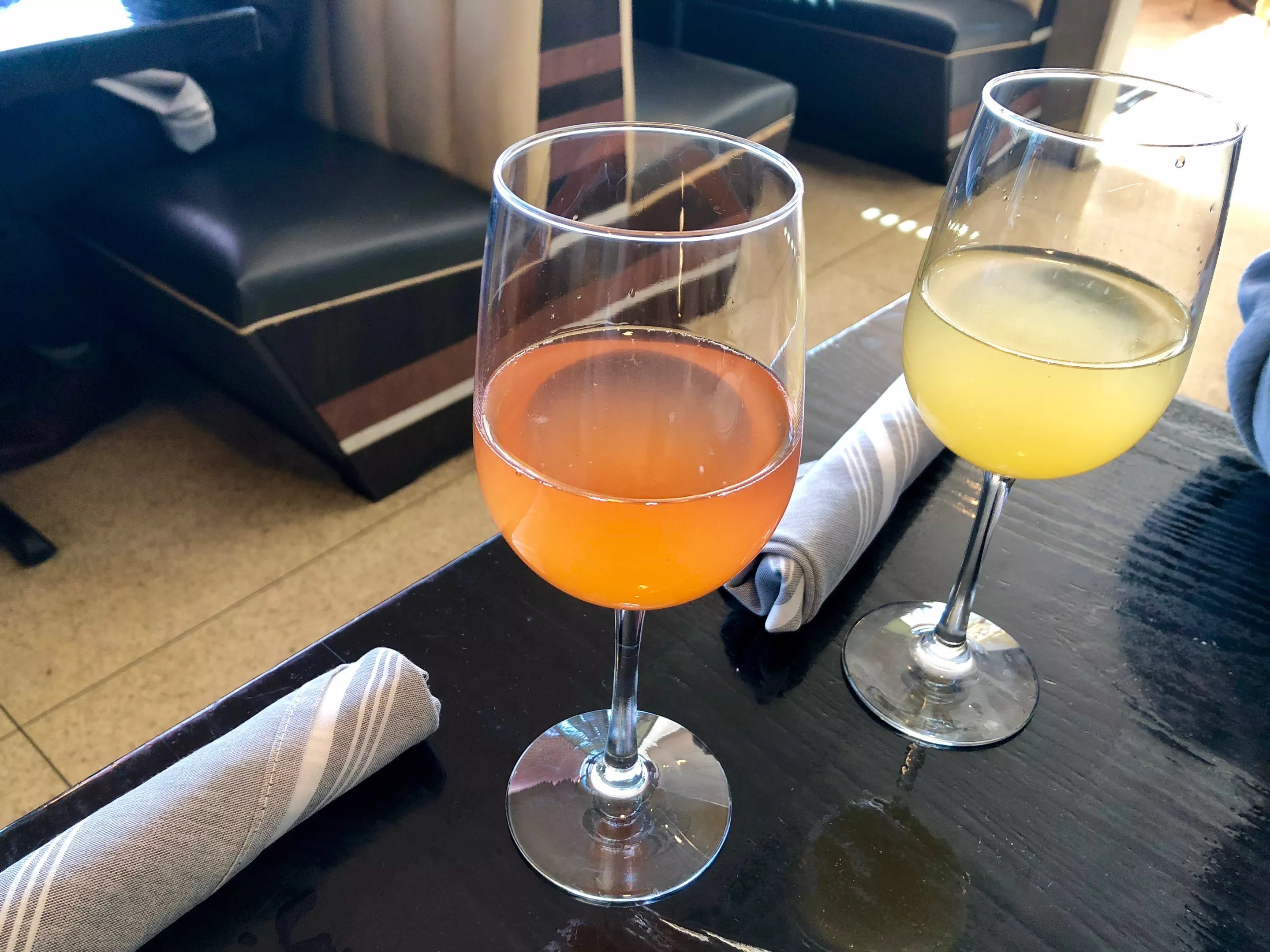 The mimosas at Nova come with your choice of flavored vodka added to the traditional brunch drink: grapefruit (right), peach (left) or cranberry.