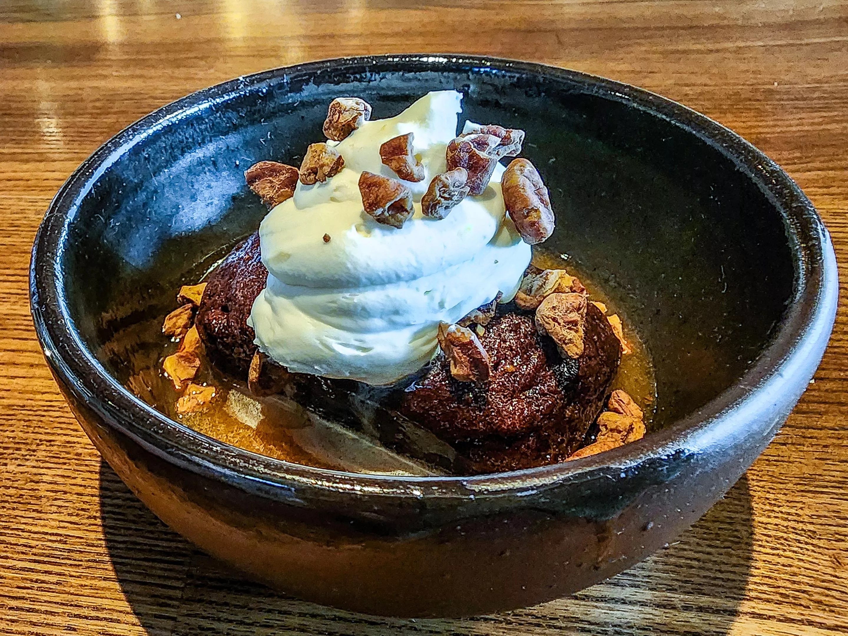 We were going to forego dessert, but the server told us that sticky toffee pudding was available that day, so what are you going to do? You are going to order it and finish it all – that’s what you’re going to do. It was rich but not too sweet, believe it or not, topped with whipped and roasted nuts, with just a bit of caramelly warm sauce surrounding it all.