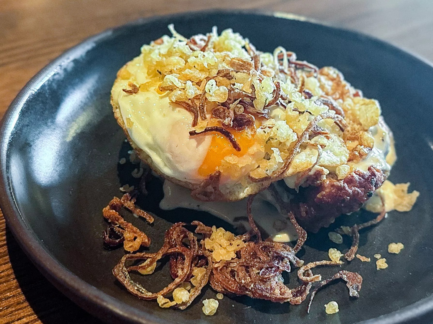 If you missed out on an earlier iteration of Norris’ koji chicken at her limited-run restaurant Stepchild a couple of years ago, you’re in luck. The fried chicken thigh was one of the best things we’ve eaten this year. A perfectly cooked thigh was both juicy and so satisfyingly crunchy, the flavorful skin crisped to perfection, the fermented shio koji intensifying the experience. Along for the party was some smoked shallot gravy liberally dressed with crispy shallots that also kicked up the texture profile a notch. Oh, yeah, all topped with a fried egg. Wow.