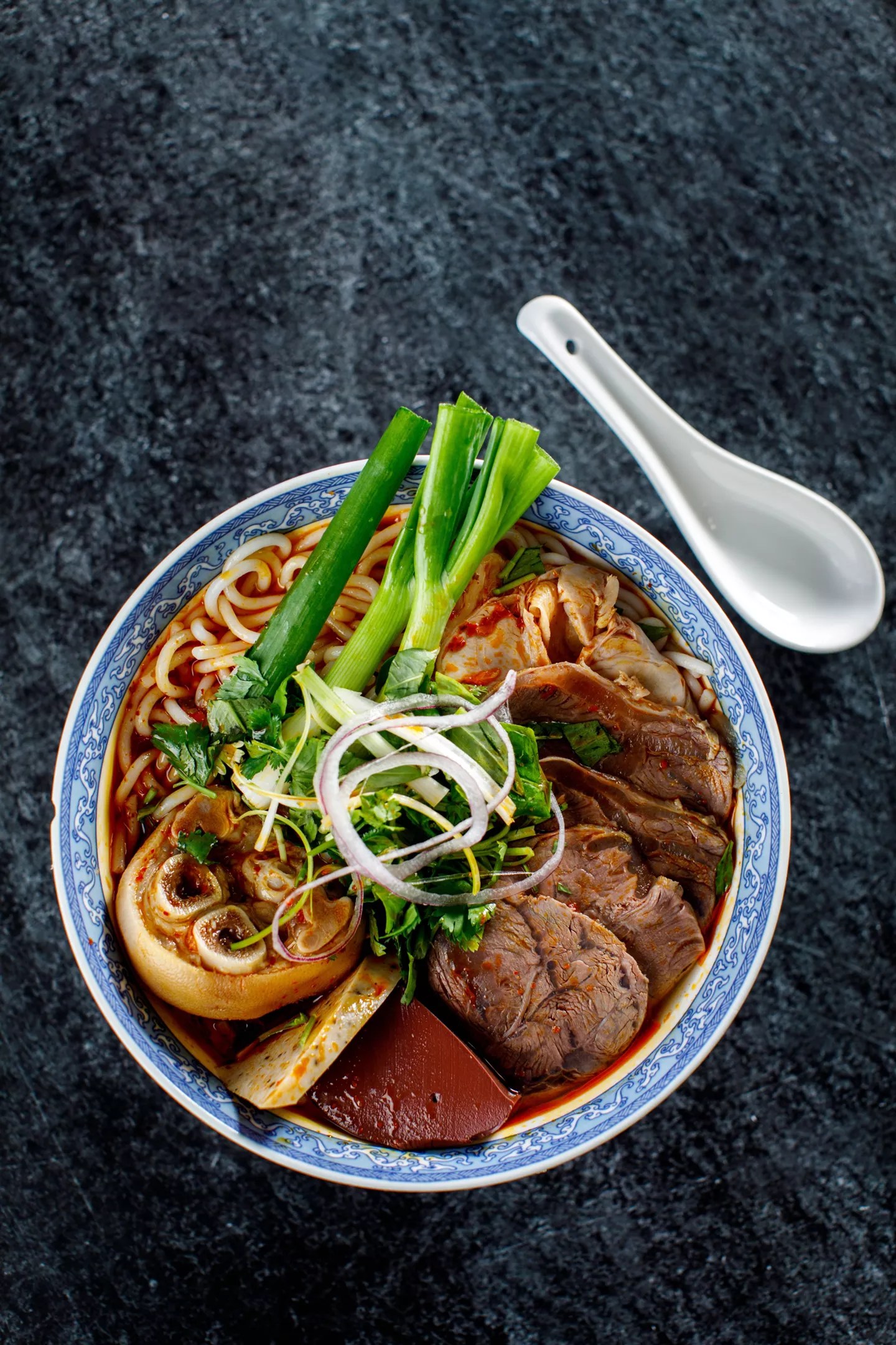 The soup base starts with the usual beef bones and spices, taking more than 12 hours to simmer and enrich the broth. The kitchen starts the process of cooking the noodles at 8 a.m. and doesn’t stop until 9 p.m.