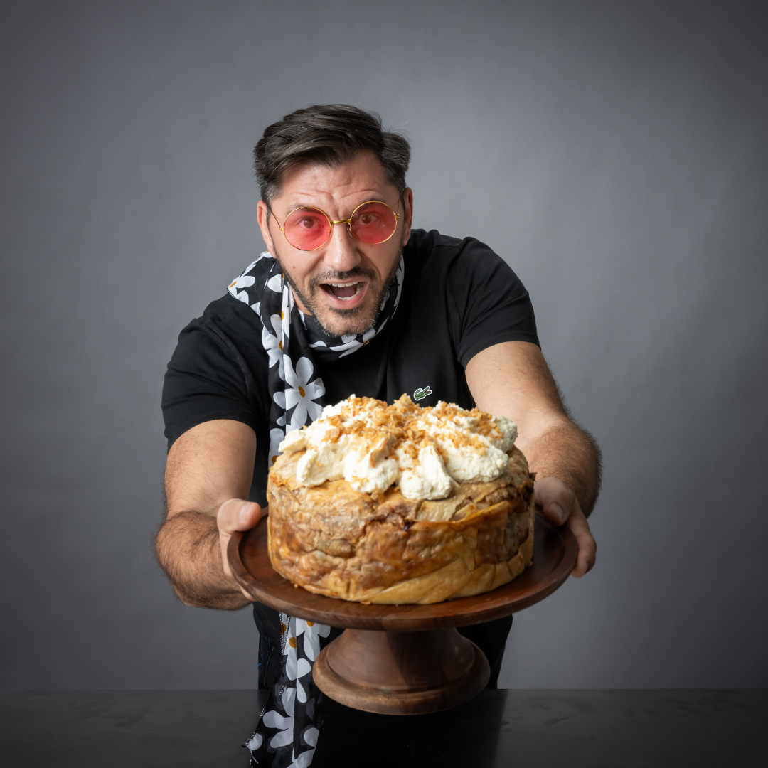 Peja Krstic, the chef at Bib Gourmand Mot Hai Ba, is baking a Serbian gibanica cheese and meat pie.