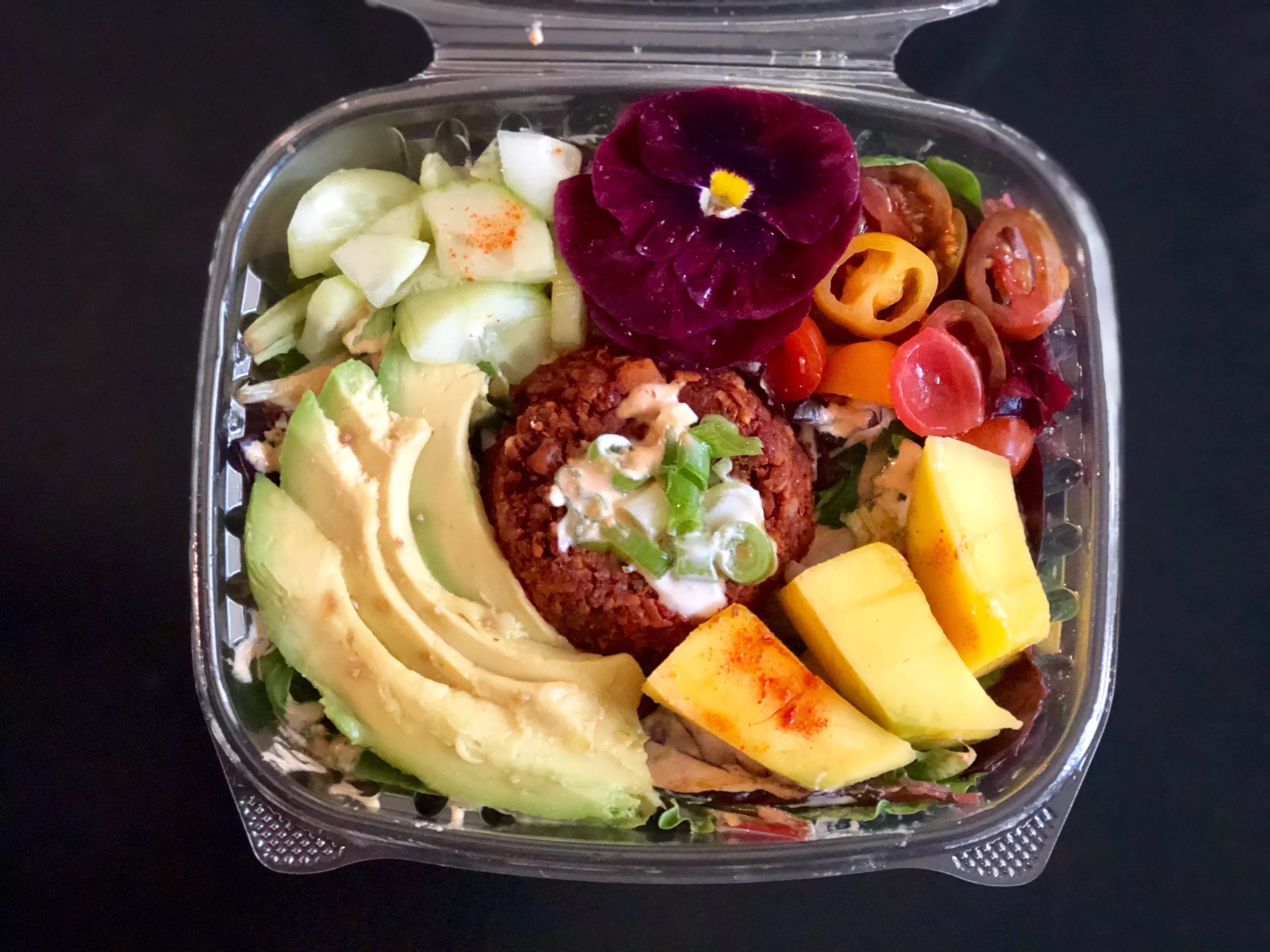 Crear’s goal is to give people alternatives to meat and the processed meat substitutes that are a staple of many vegetarian and vegan diets. For example, the “meat” in the taco salad ($8.95) consists of chipotle walnut and sun-dried tomato and is served over a bed of greens with tomatoes, cucumbers, mango, and avocado.