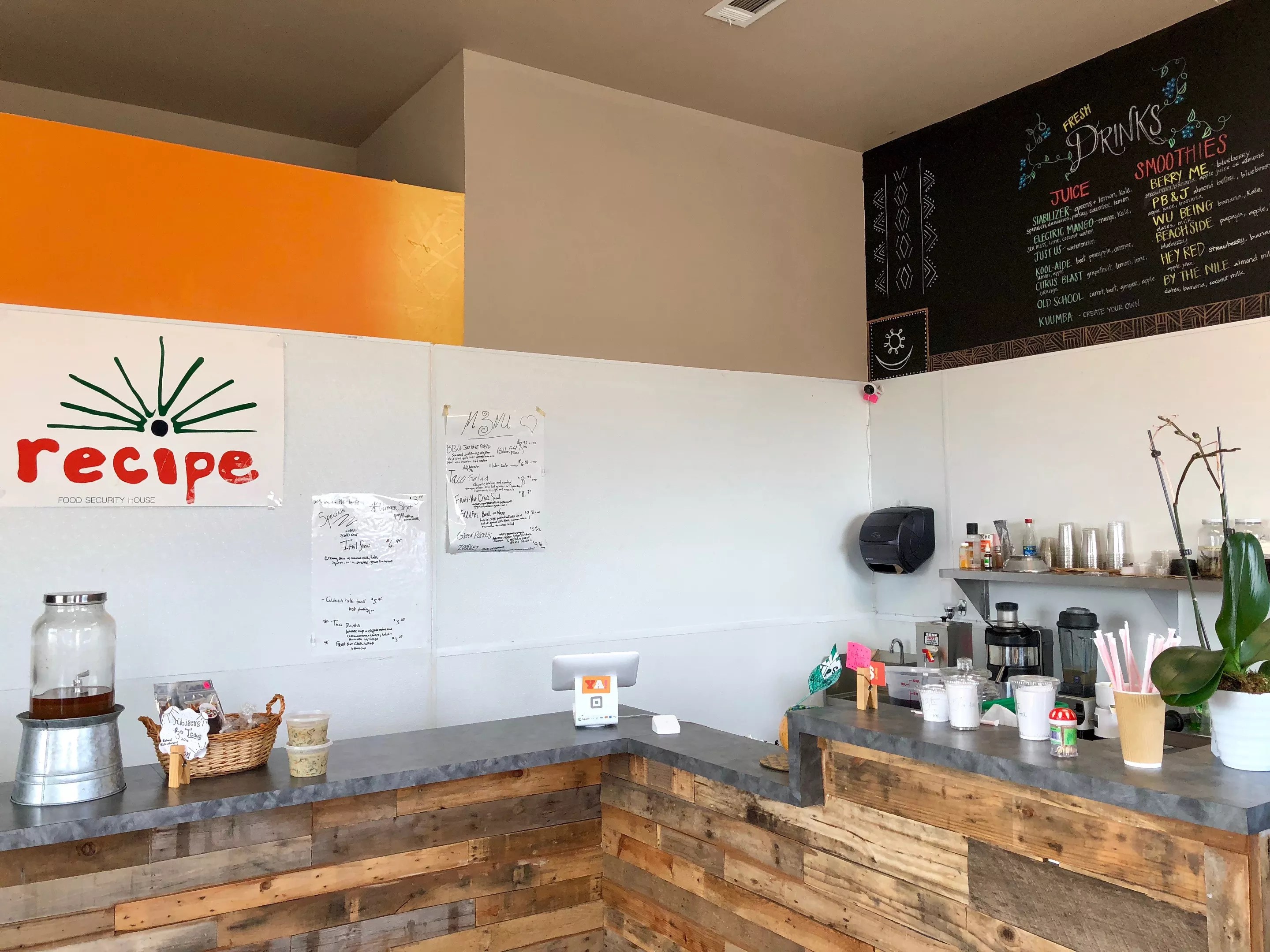 Recipe Oak Cliff is a food venture aiming to bring fresh options to the food desert neighborhood of South Oak Cliff. Recipe, which opened in early 2017, serves juices, smoothies, and a daily menu of vegan, raw and “live” food. It also offers shared kitchen space rentals, cooking classes and catering services.