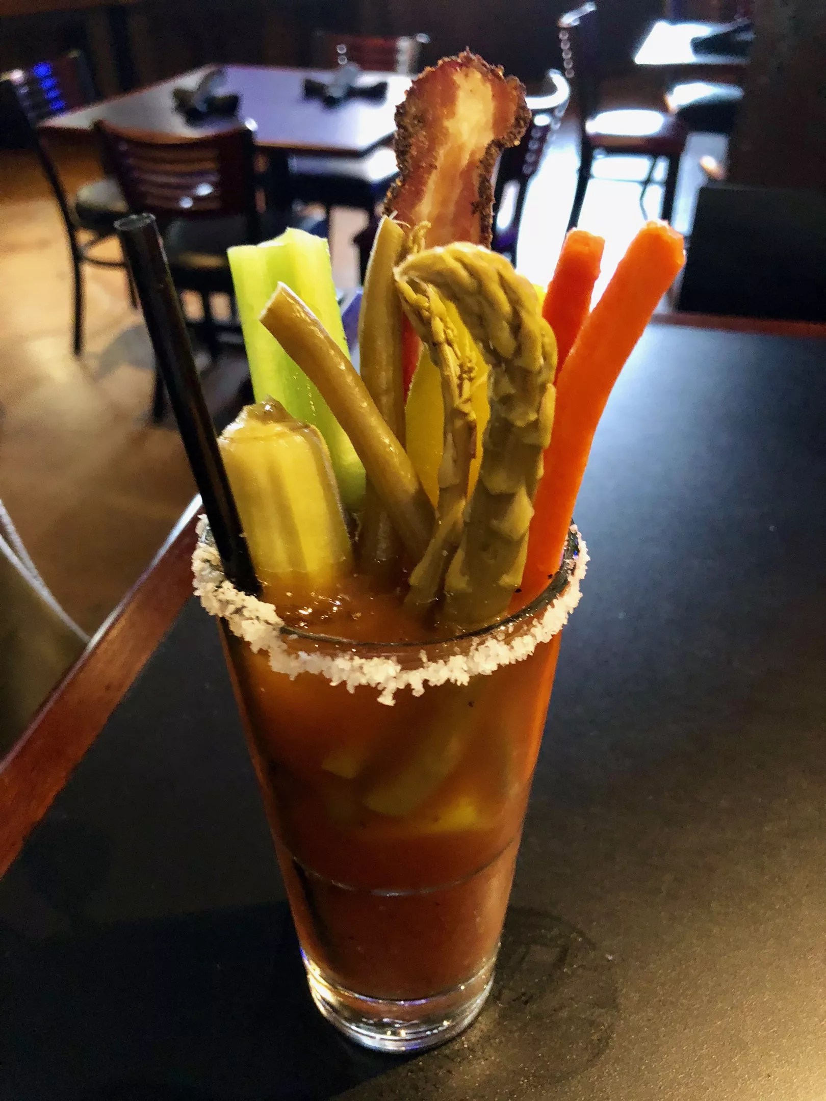 The brisket brunchiladas ($12.50) are three mini enchiladas stuffed with super-smoky brisket and topped with a sunny side up egg, sliced avocado, pico de gallo and salsa roja. We were disappointed when the dish arrived lukewarm. And while the portion of brisket inside is generous, the enchiladas are dry. Rather than being slathered in a creamy cheese sauce, they are covered in shredded cheese, which was melted to a crisp. The queso that you should find on the enchiladas is instead mixed into the “bacon’d hash” on the side of the dish. Build the bloody of your dreams. Paige Weaver