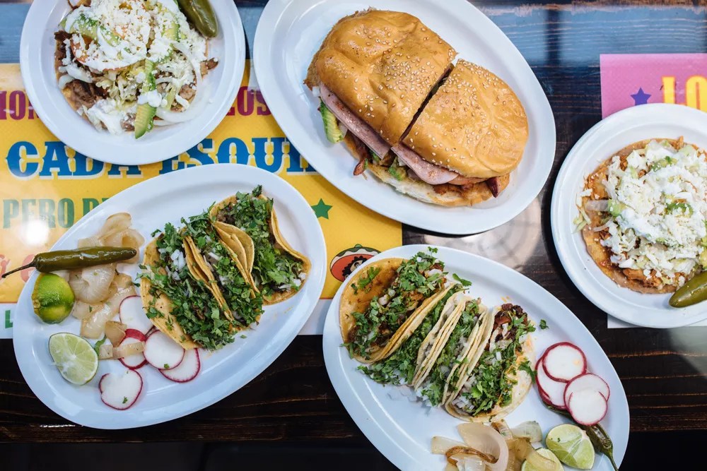 Clockwise from top left: La Salsa Verde's tostada de pollo, torta cubano, tostada de pierna, tacos de lengua rebanada, tacos al pastor, choriquesos, tacos de cachete and fajita tacos.