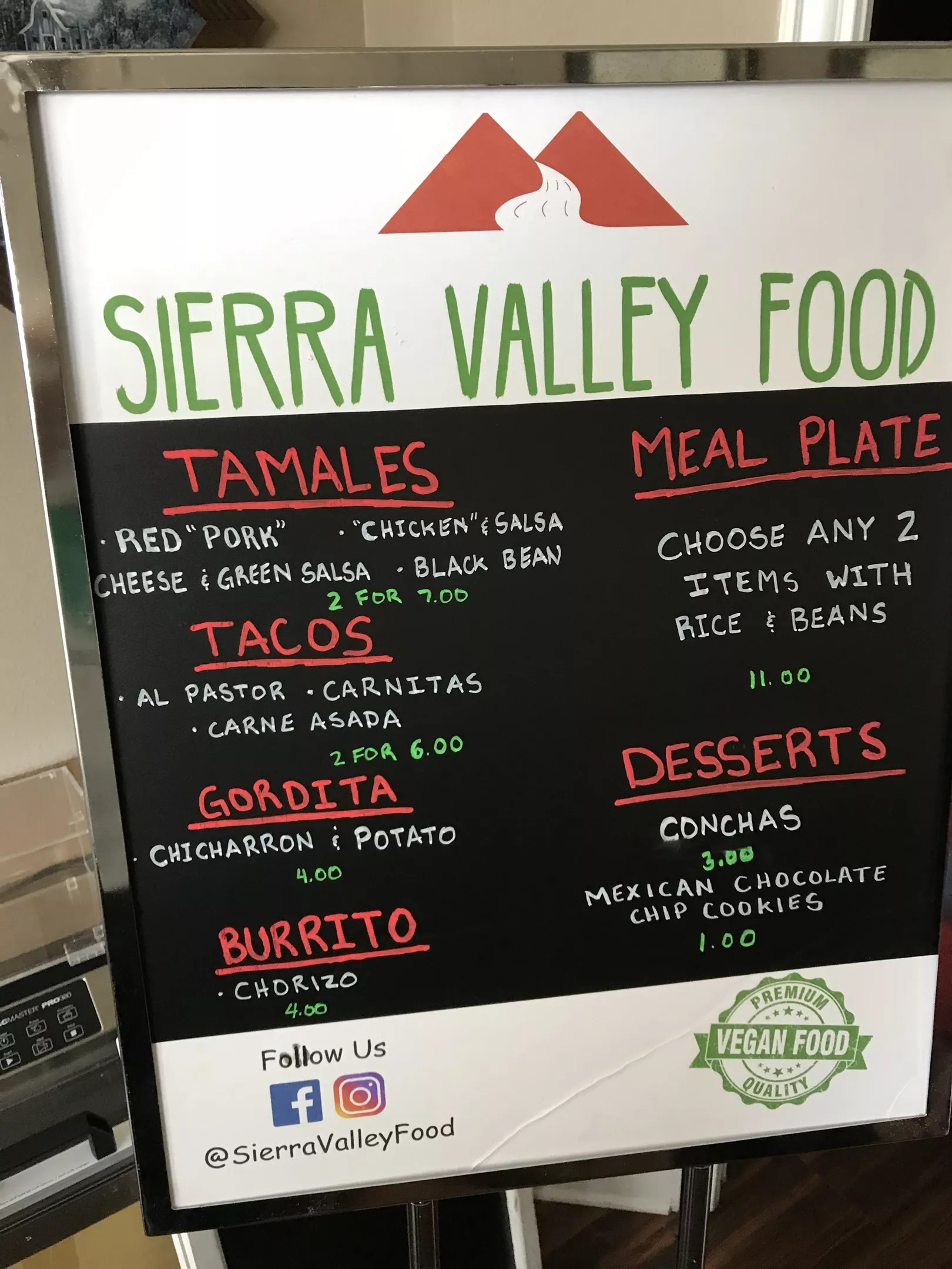 Sierra Valley Foods’ menu