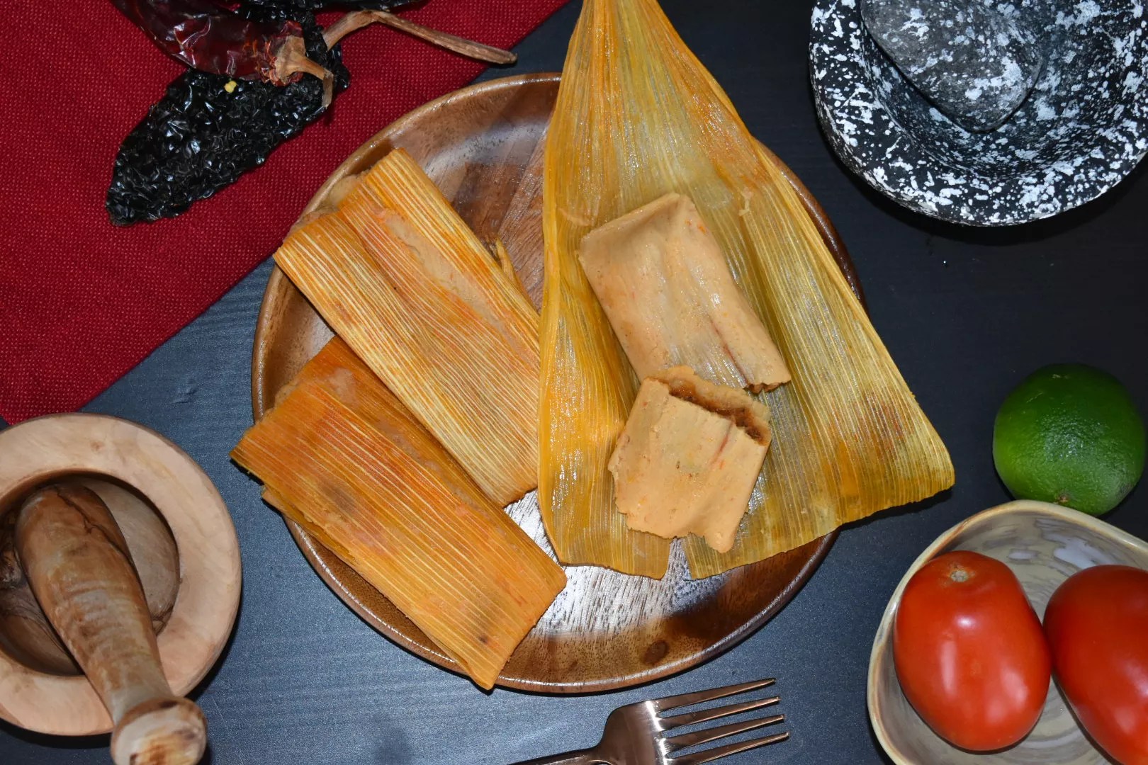 The Hernandez family spent a year perfecting their recipes. They use various meat alternatives – jackfruit in the “pork” tamales and dehydrated soy in the “pork” tacos. The “al pastor” and “beef” are made using wheat gluten.