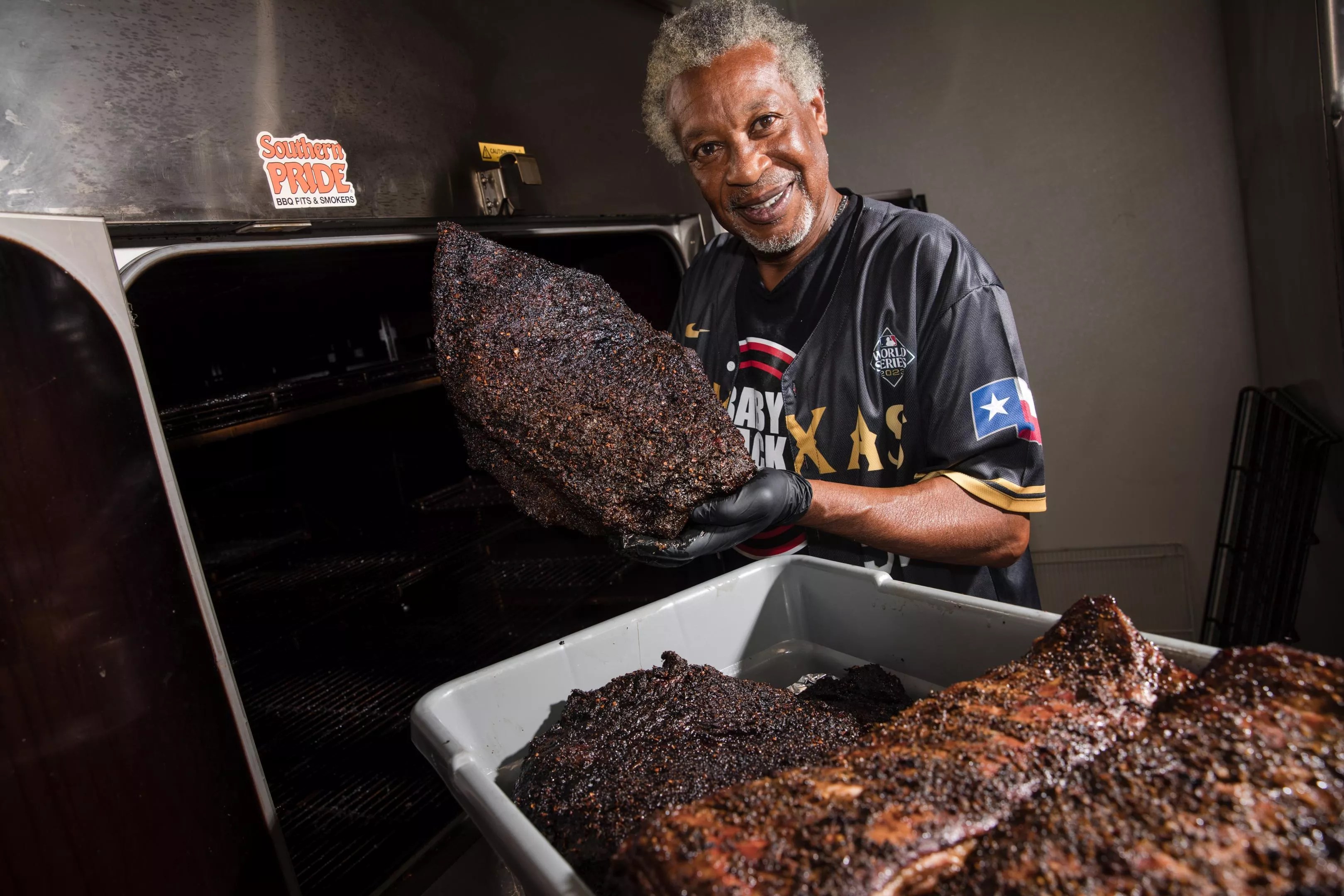 “So my wife and I, we thought about that idea [of opening a restaurant],” he says. “I cooked very well in the backyard and got some positive reviews. I started cooking ribs in my home in Cedar Hill in the backyard. I did a little cooking for the Cedar Hill Fire Department. They thought my house was on fire, but I was really cooking in the backyard. So that was basically my first client.”