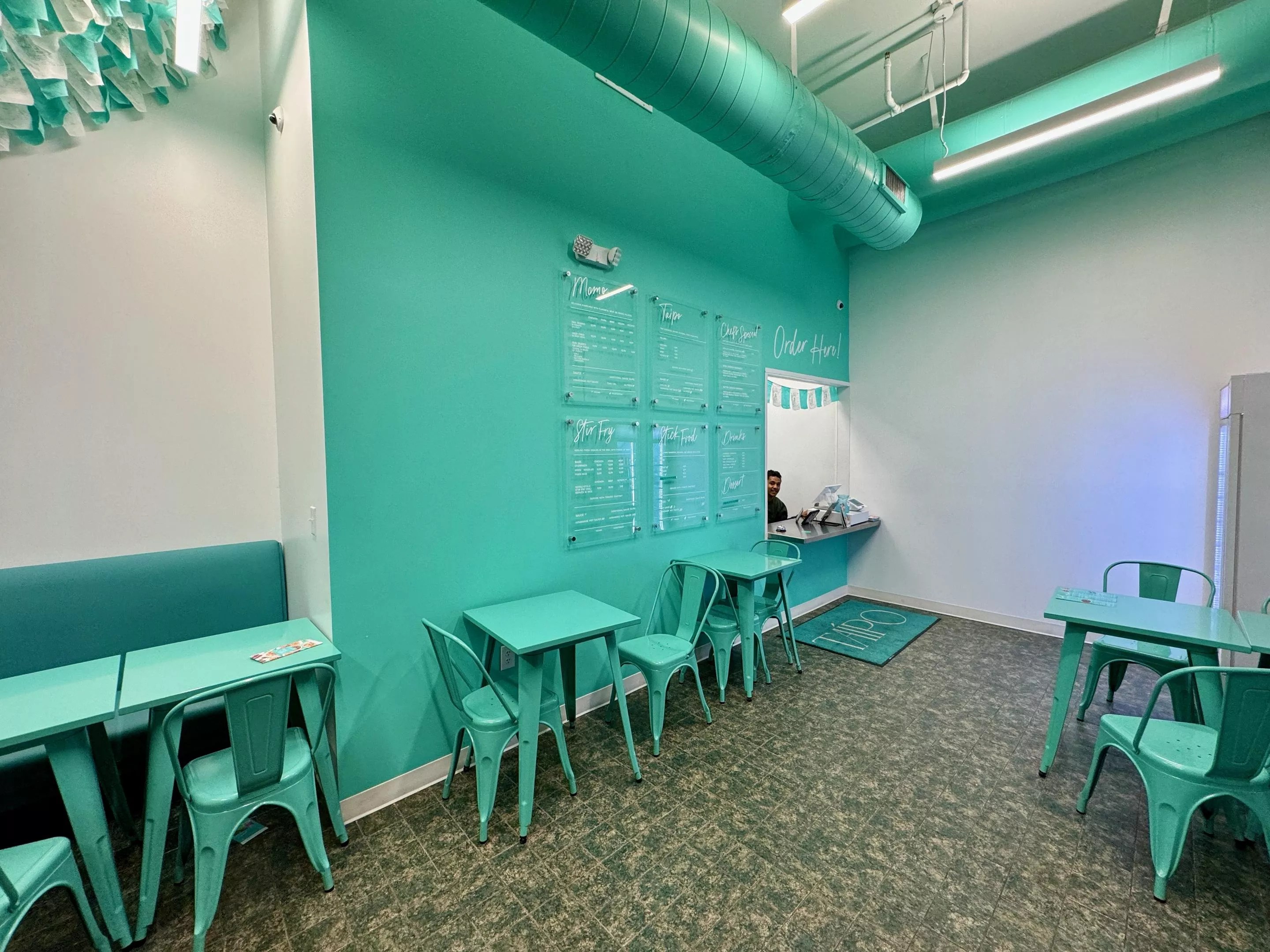 These authentic art pieces aren’t noticeable when one enters Taipo – in fact, it’s a complete contradiction of sorts: the front space is bathed in a Tiffany blue, from the walls to the trash cans and custom-made booths. Puri liked the elegant brand identity the color channels.
