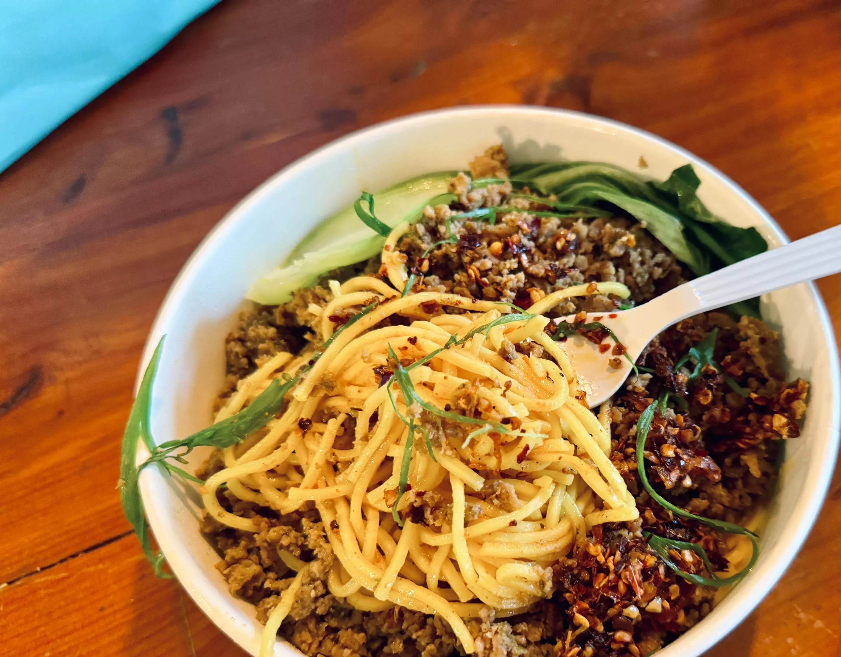 Dig into the stir fry section, which includes Keema noodles, fried rice, chili with rice and chow mein, again with several protein options. We went with ground pork with Keema noodles packed with spices. This might (might) be the dish we dream about the most, punching the noodles with a fork to grab clumps of chili, ground beef then twirling all together. Served in a big paper bowl, it travels well and was still warm at home 15 minutes later. The next day, reheated in a skillet, it was even better.