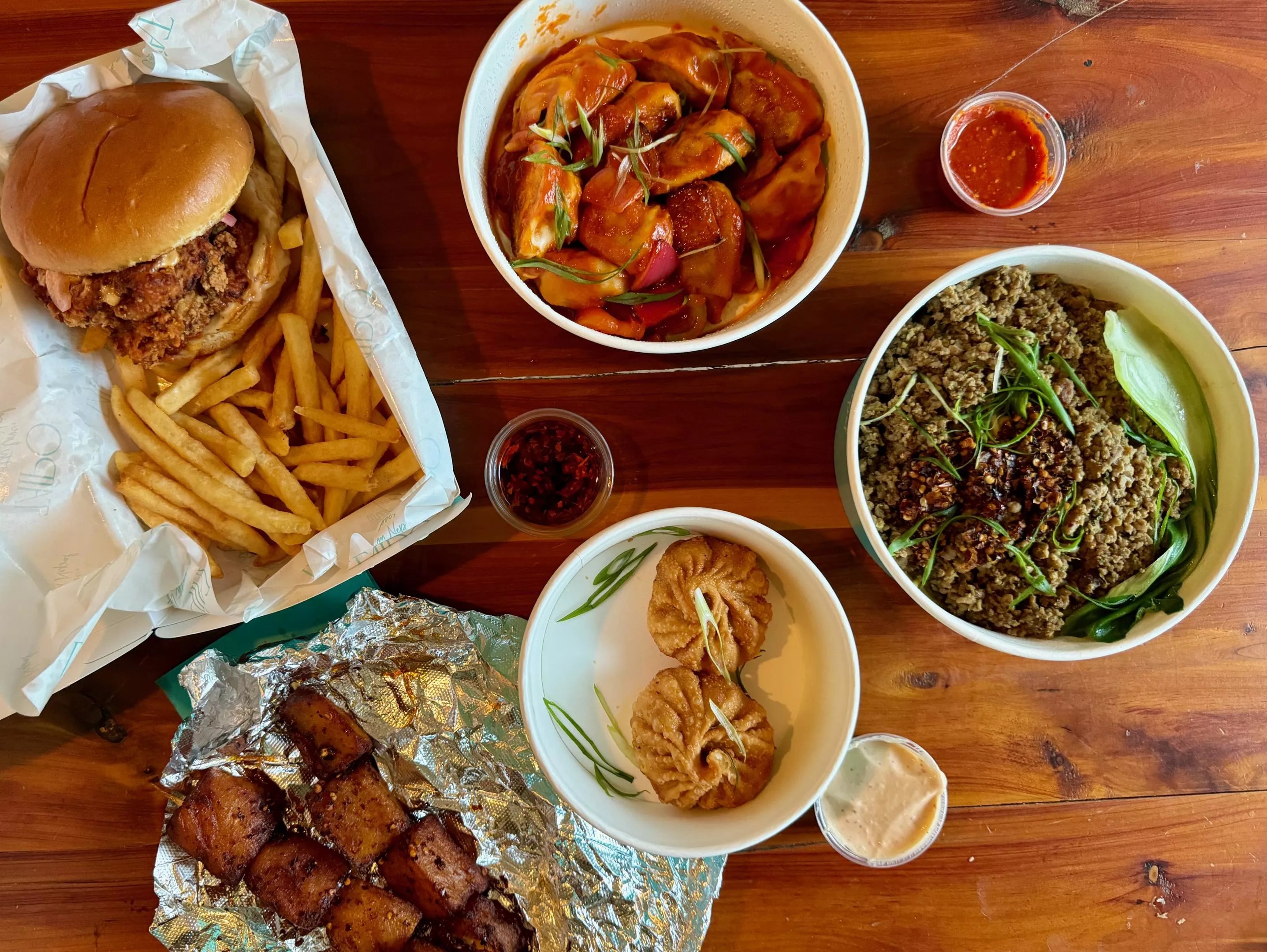 While the space and art within are interesting, the food is what drew us in. An online menu is straightforward, with four main sections: momo, taipo, stir fry and a chef’s special. You can (and should) order something from each, which will run you about $40. And it’s enough for three or four meals. So, yes, do that.